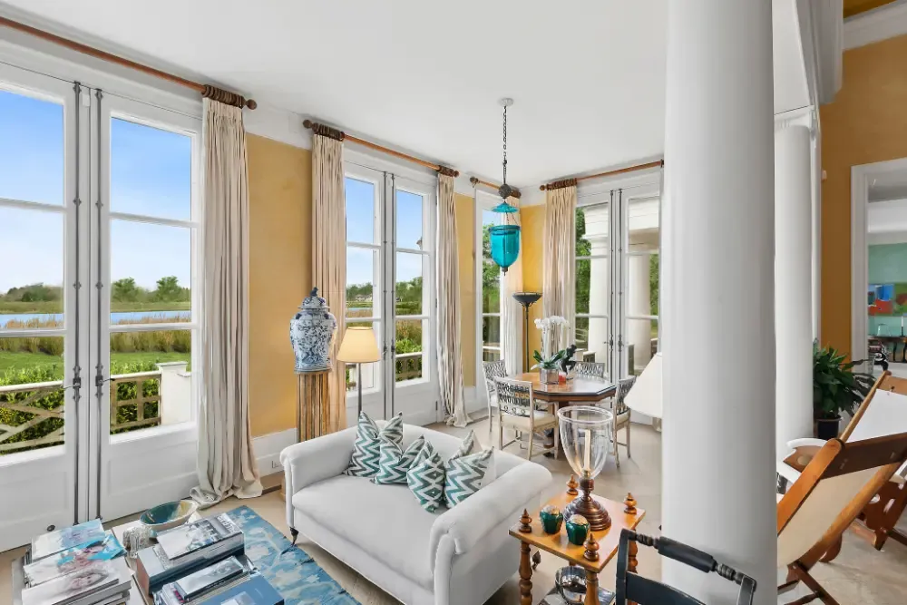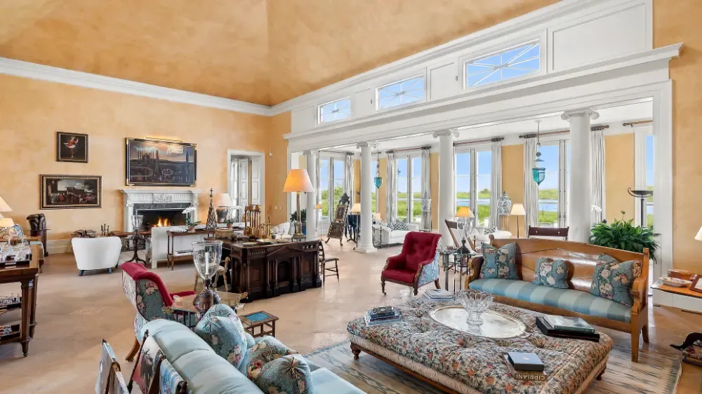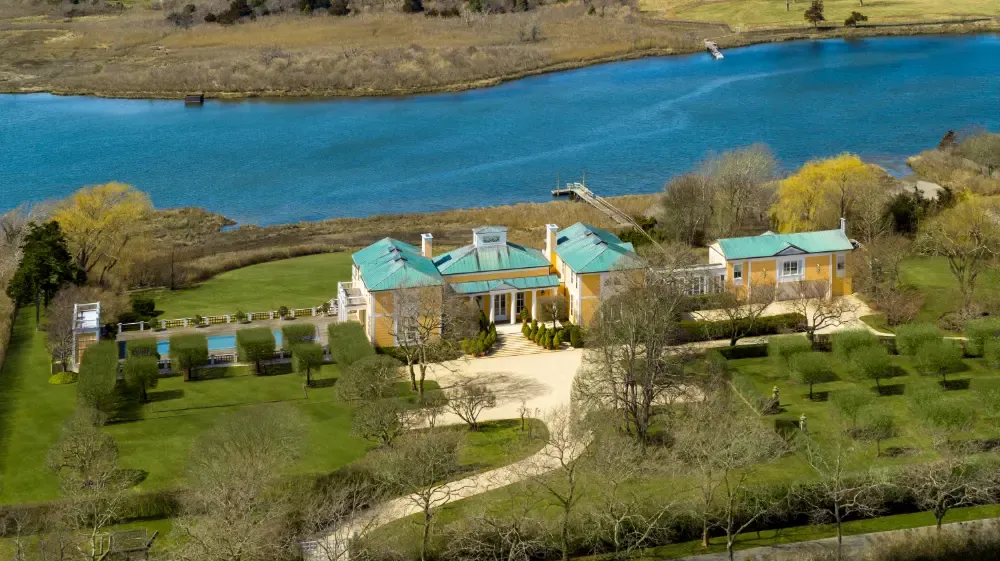 Southampton Village Estate Section: This glorious house was designed by world-renowned architect Jaquelin T. Robertson for owners Ahmet and Mica Ertegun in 1990 and positioned on a 5.5-acre west-facing parcel with 450 feet of frontage on Taylor Creek including a boat dock. The house of nearly 11,000 square feet is in excellent condition and features grand-proportioned rooms with high ceilings throughout. There are ten bedrooms and thirteen and a half bathrooms including a staff wing. The swimming pool is 20 x 75 and elevated with waterviews. A broad site facing a nature reserve while enjoying direct ocean breezes and early evening sunsets. First time offered and listed.