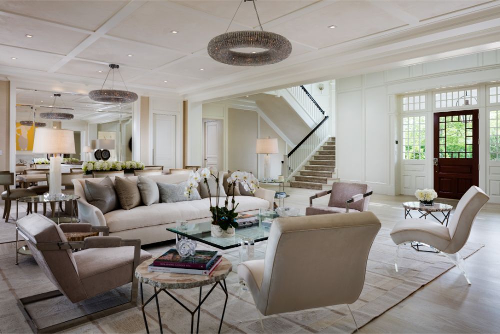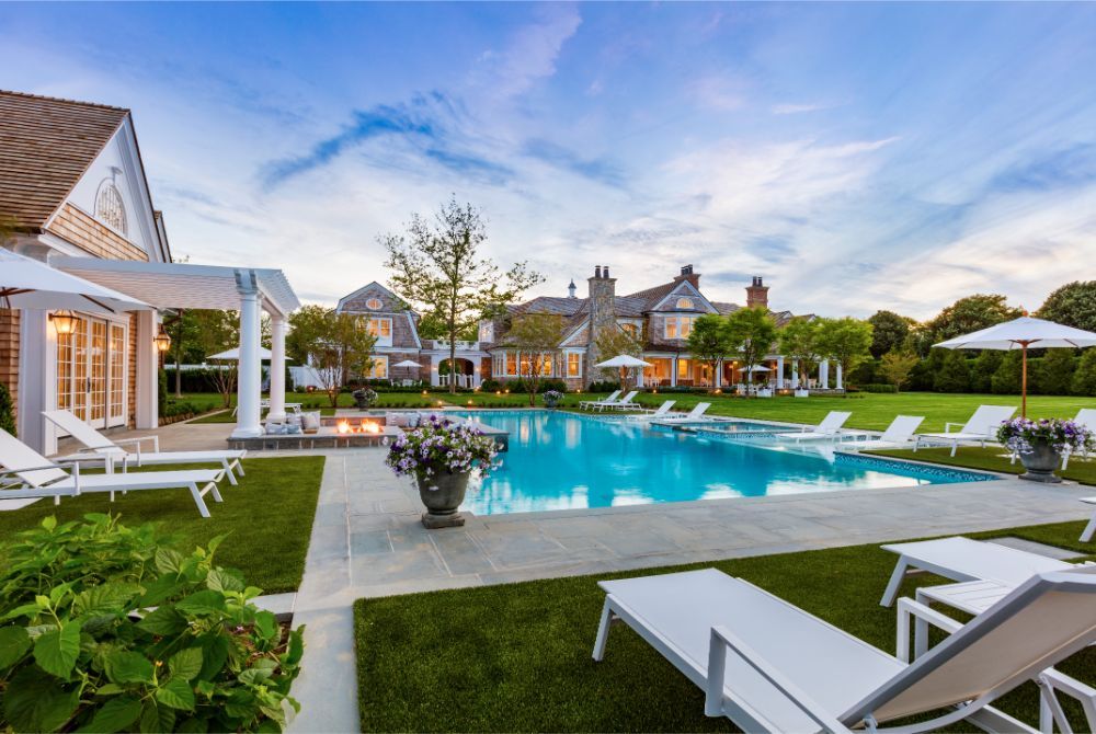 With the debut of Tower House, John Kean has completed his second magnificent fully furnished estate, poised behind a gated entry, on 4 + manicured acres in the heart of the enclave known as Olde Towne. Luxurious appointments, exquisite furnishings and state of the art amenities find harmony within Kean’s masterful construction. Warmed by six fireplaces, the striking traditional residence, with interiors by world renowned designer Anthony Ingrao, balances common rooms with intimate spaces throughout its 11,500 square feet of living space. A gracious entry leads to great room, den, billiard room and extensive loggia enhanced by automatic screens. The kitchen, set within its own great room is augmented by a glass encased wine room. Accommodations include 6 bedrooms with baths ensuite, including extensive master suite on the second floor. Two full staircases and an elevator connect to an additional 4,000 SF lower level with theater, gym, full bar as well as two full staff suites. An attached wing with its own terrace becomes the perfect guest area with living room, kitchen and two additional bedroom suites. The manicured, meticulous landscape, bordered by a classic, privet hedge frames the 60′ custom Gunite pool with an oversized spa as well as sunken sitting area with fire pit that juts out into the pool itself, all serviced by an extensive pool house. Ample entertaining spaces are set within vivid garden beds and expansive, open lawn areas that overlook the sunken Deco Turf tennis court with lattice covered viewing area. With proximity to the village of Southampton, its ocean beaches and everything else that makes the Hamptons a world class resort, Tower House demands your attention today.