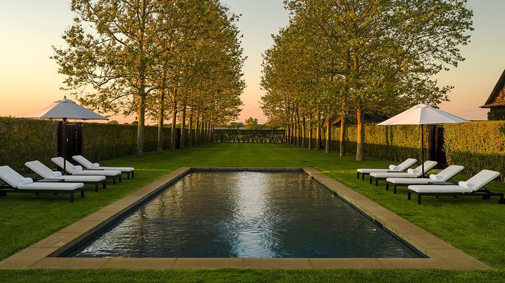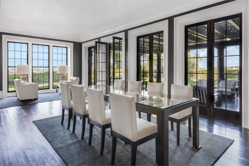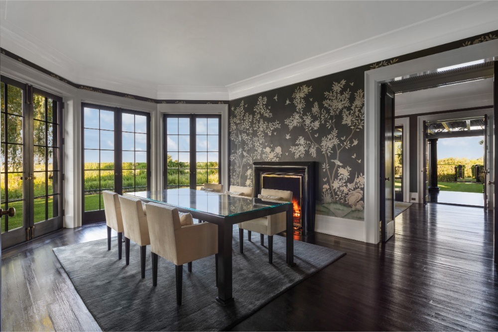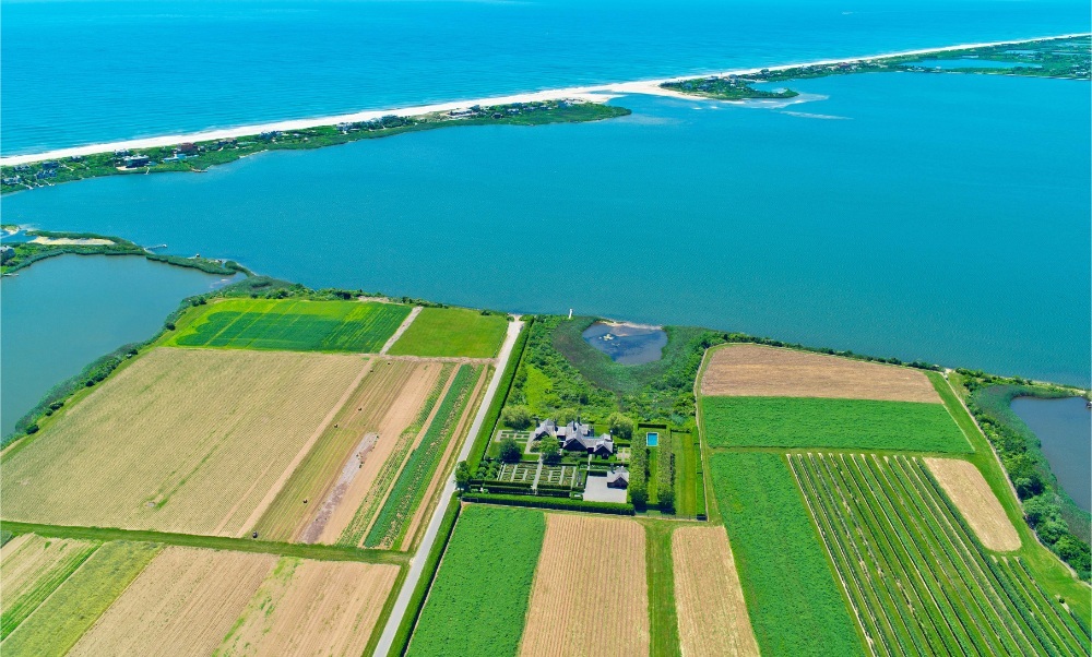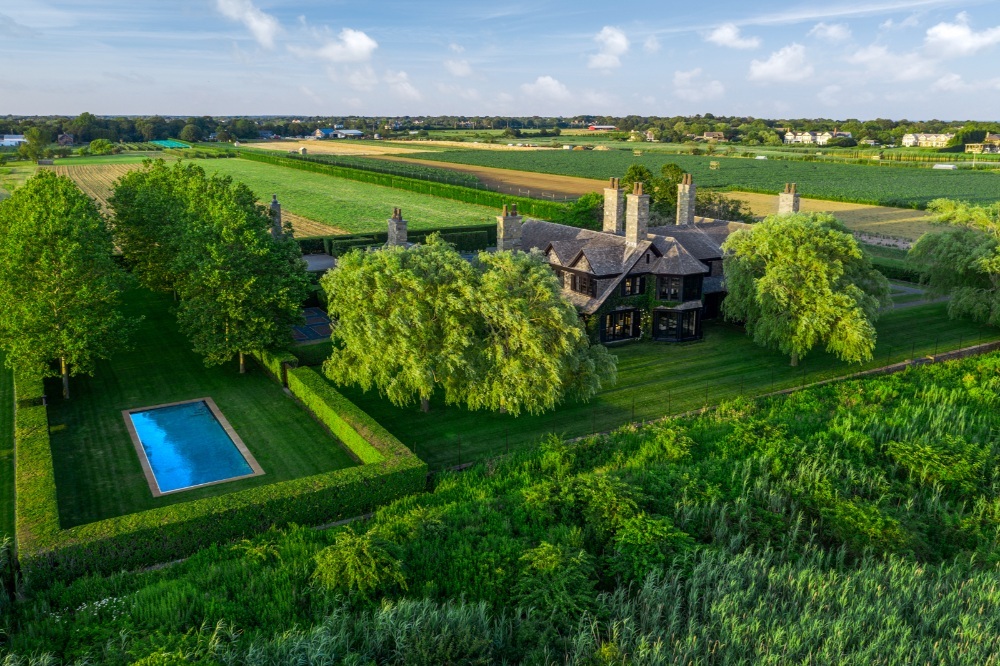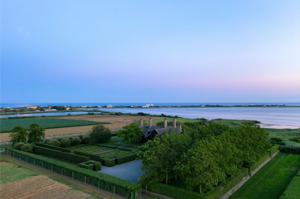 Utmost privacy surrounded on three sides by land that has been farmed by the same two families since the 1600’s. This 6.9 acre estate is bordered on the fourth side by 360 ft of water frontage on Mecox Bay. This shingle-style traditional house with classic English gardens truly epitomizes the concept of artisanal fueled craftsmanship. Taking 5 years to complete, Listowel truly redefines luxurious living in the Hamptons. The interior and exterior spaces are designed to seamlessly integrate all the modern conveniences yet still maintaining the old world style and sensibility. The home encompasses over 12,000 sq. ft. of living and entertaining spaces including a dramatic two-story library with fireplace as you enter the front door. The large living room with fireplace and French doors that open up to the expansive covered porch. Off the main foyer is the formal dining room with French doors, fireplace and hand-painted chinois wallpaper. The adjacent large gathering room opens on to the trellis-covered outdoor living room with a stone fireplace. Separate, though attached, is the “guest cottage” which features a complete informal living area which includes a fireplace, studio, en-suite bedroom and access to the outdoor spa. Off the main staircase, the master suite encompasses the entire south-eastern wing of the house and includes vaulted ceiling bedroom with fireplace and French doors that step out to the south facing deck with dramatic views of bay and the ocean beyond. There is a large, fully marbled master bathroom with radiant heat floors and views of the farm fields. There are 3 additional ensuite bedrooms, all with vaulted ceilings, and fully marbled spa-like bathrooms. The level of excellence continues outside to the design of the six acres of gardens and accessory structures including carriage house, heated gunite pool within the allée of Sycamore trees, vast rose garden, orchard of 60-year-old apple trees, potager, flower cutting gardens, and specimen mature trees, with room for a tennis court. A beautiful nature path leads down to the large dock, perfect for motor boats and kayaks.