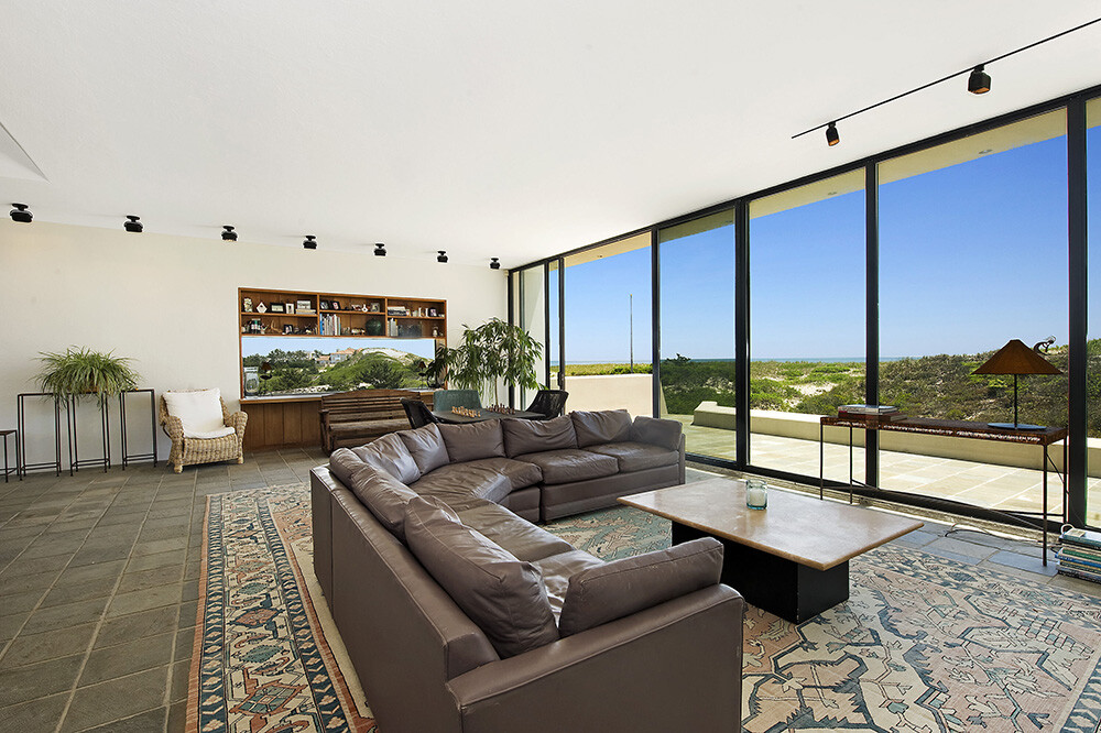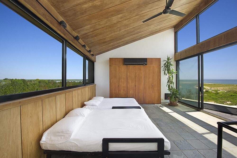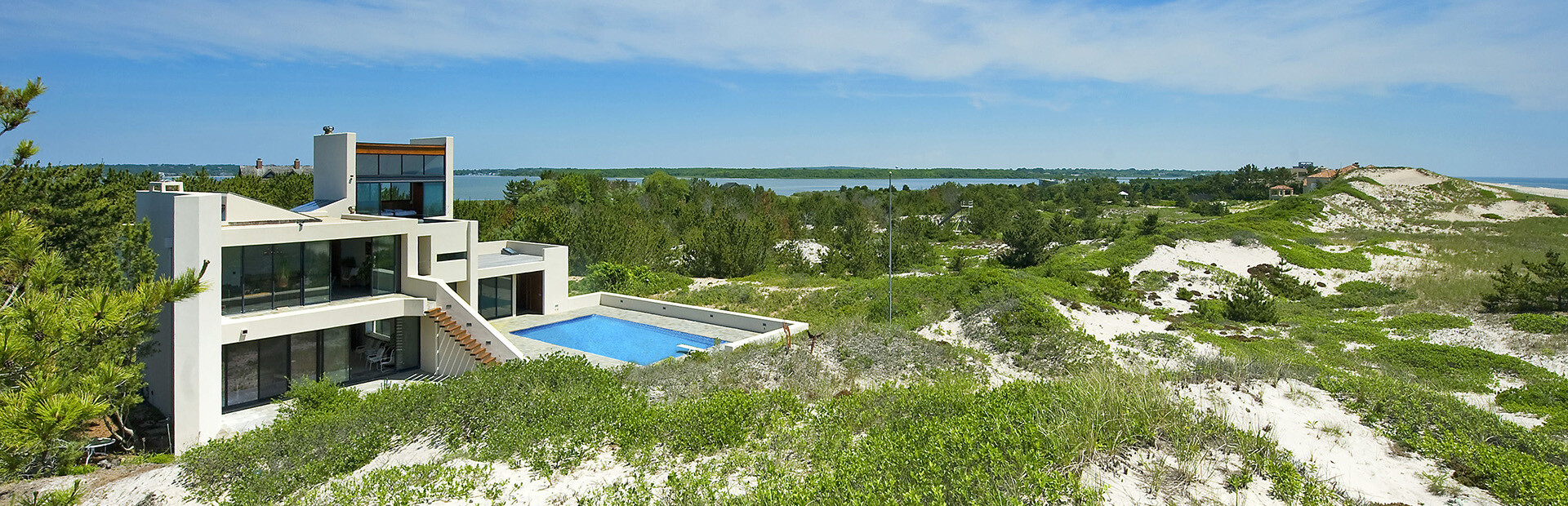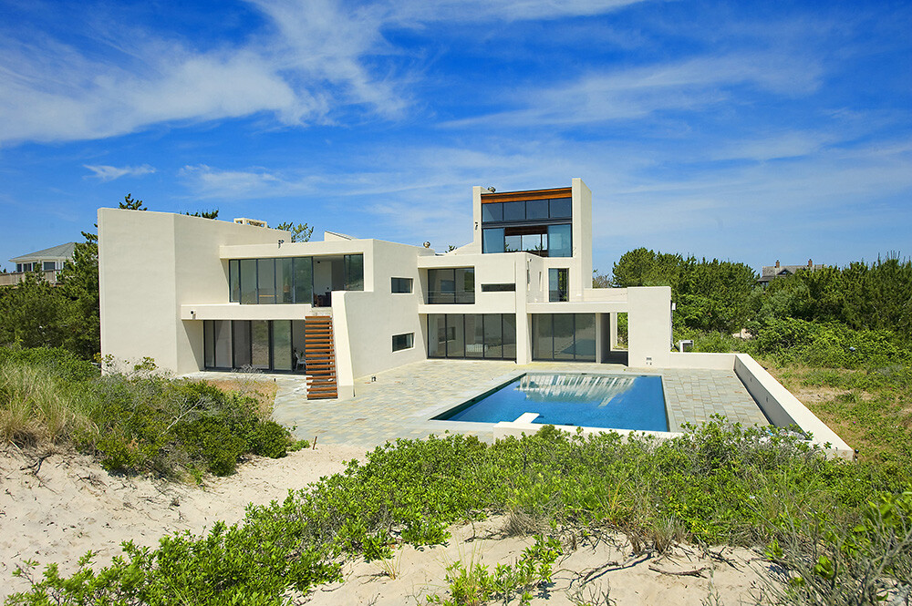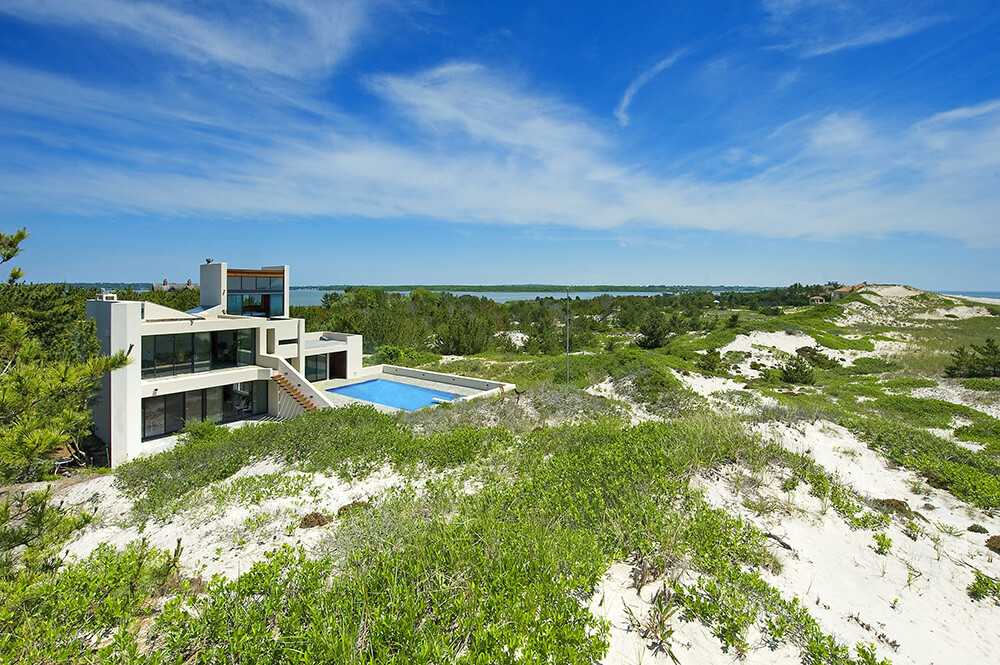 One of the finest examples of contemporary architecture is represented here in this oceanfront residence designed by world renowned architect Ward Bennett. The concrete and stucco residence boasts rooms full of light all opening onto golden sand and miles of unspoiled coastline. A few of the features of this home suited for a ‘home collector’ and planned for carefree summer living include six bedrooms, six bathrooms, living room, dining areas, galley kitchen, several fireplaces, game room and library, all with ocean, bay and dune views. Adjacent to protected and private dunescapes, this one of a kind offers Oceanside swimming pool and all weather north/south tennis court.