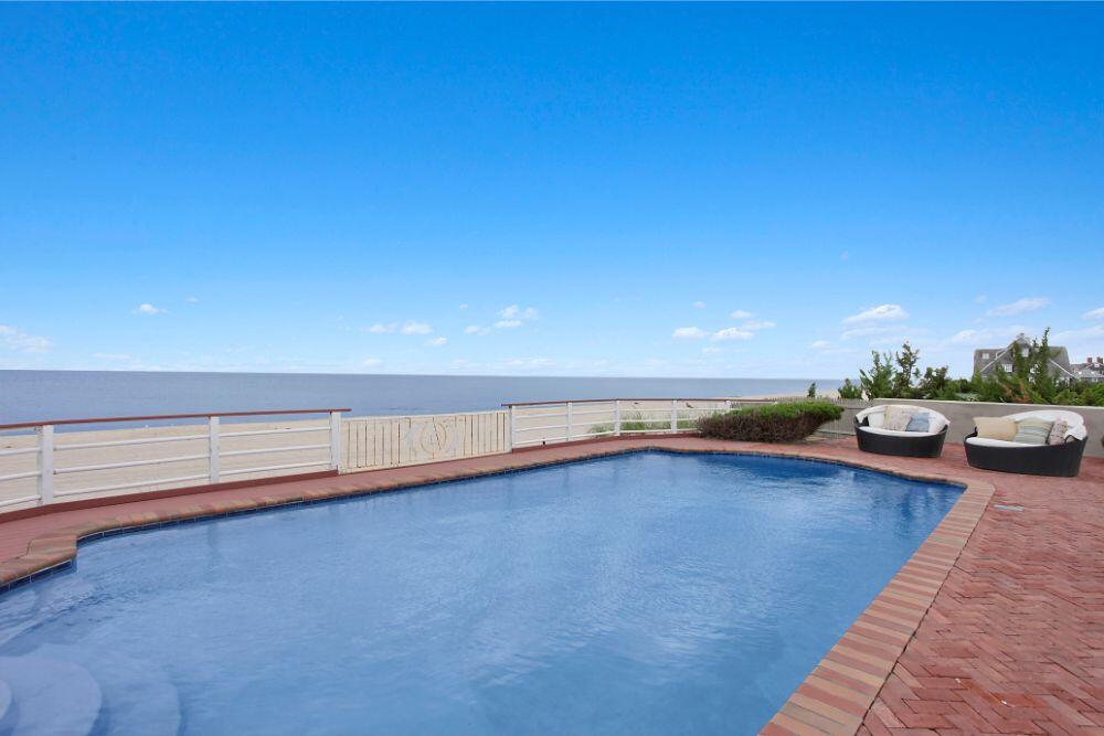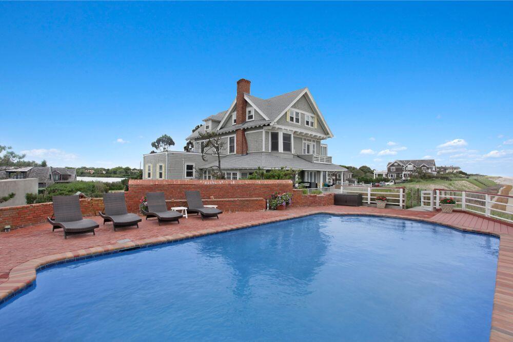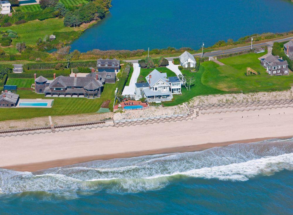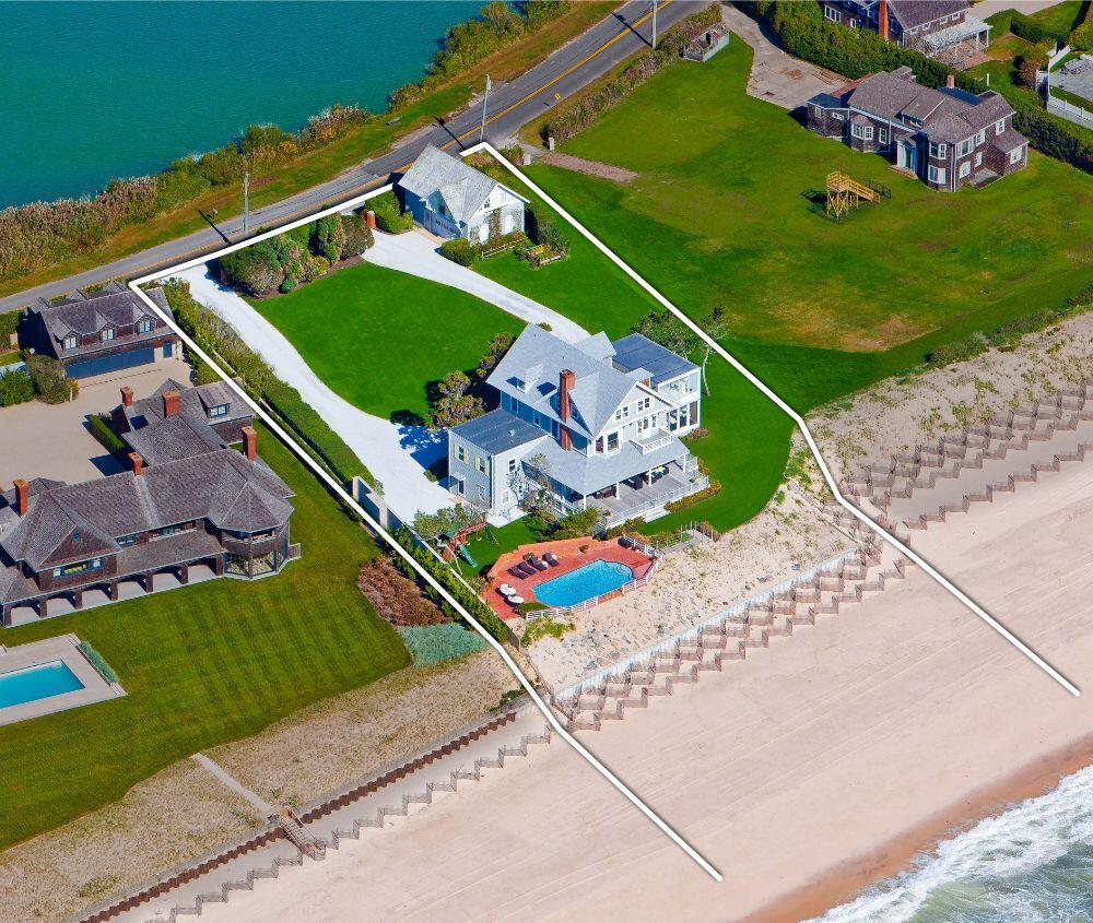 An exceptional opportunity to own this sensational Gin Lane oceanfront home with protected bulkheaded frontage is yours today. This former Henry Ford Estate of four stories (with renowned architect Philip Johnson addition) includes 2 grand living rooms, 2 fireplaces, 8 bedrooms, 6 bathrooms and nearly 10,000 square feet of living space. Wide Oceanside porches and terraces afford spectacular coastline views and unobstructed views of Old Town Pond. The dune top oceanfront pool is like no other on the East End. Also included in this rare offering is a 3 bedroom carriage house for staff or guests. One of the best values in the market today.