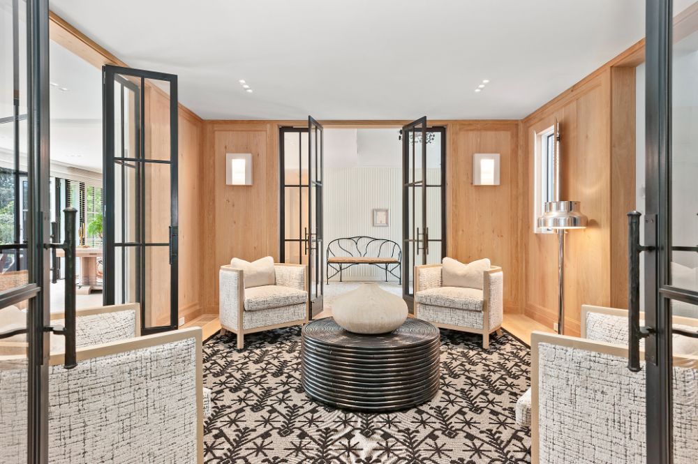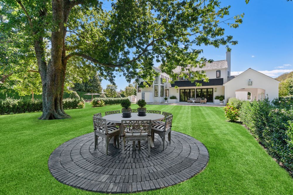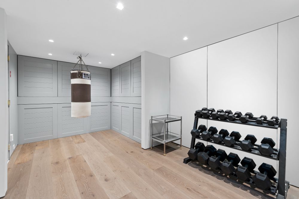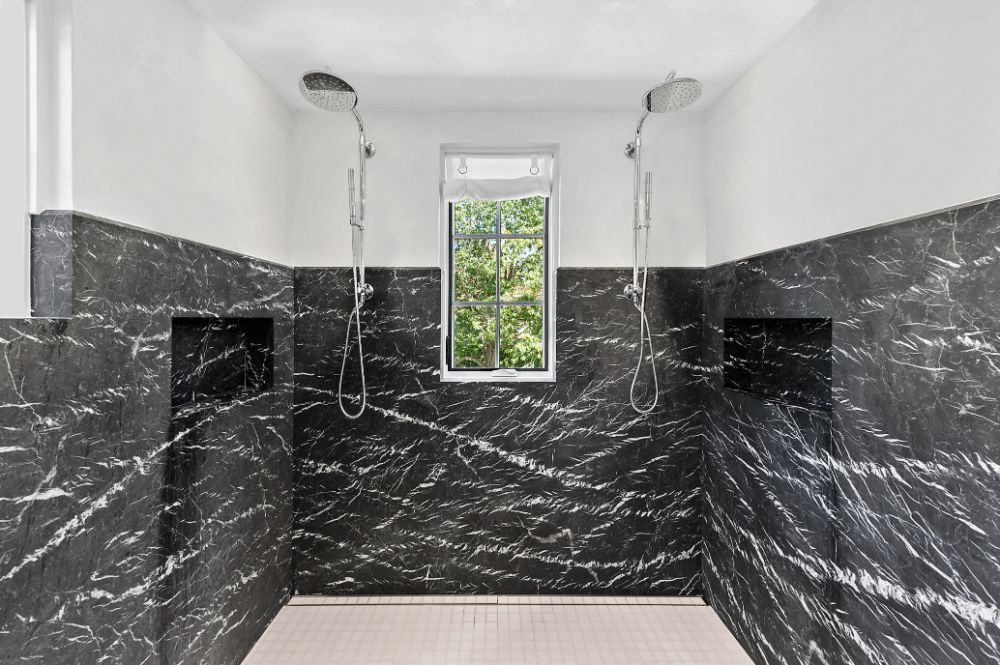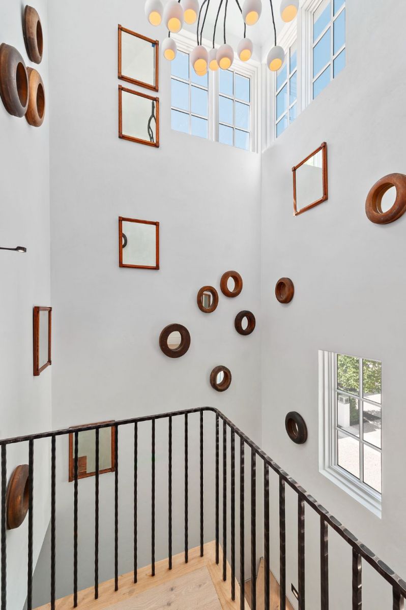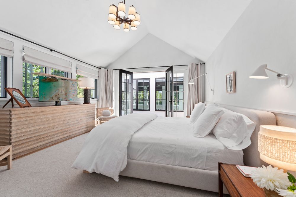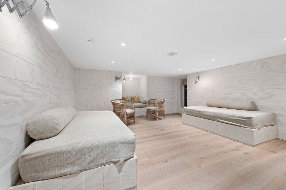 A sensible floor plan includes a sitting room, a sunroom, a first floor guest wing featuring two bedrooms and two bathrooms, a mud-room and a laundry room. The formal dining (though, this home feels more relaxed and inviting than formal) and large living room with fireplace each have access to separate terraces and views of the garden. The heart of the house is home to the spectacular double-height kitchen which needs to be seen to be appreciated with slabs of stunning marble, walls of glass and an impressive ceiling height of 22 feet.