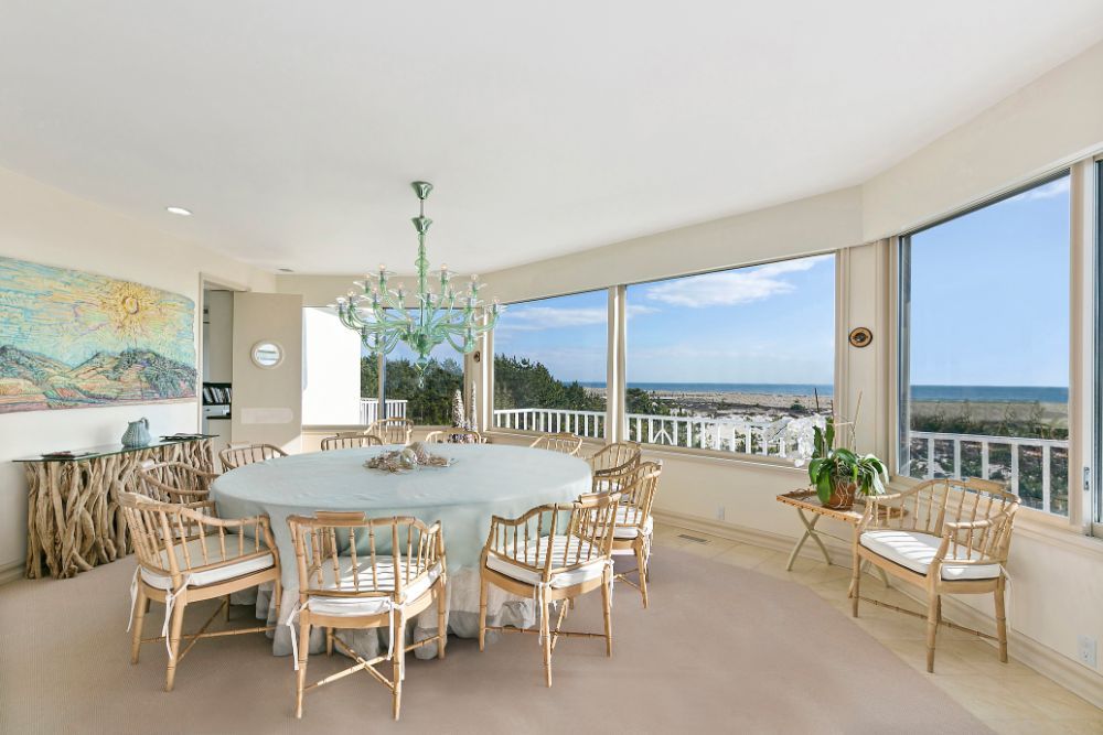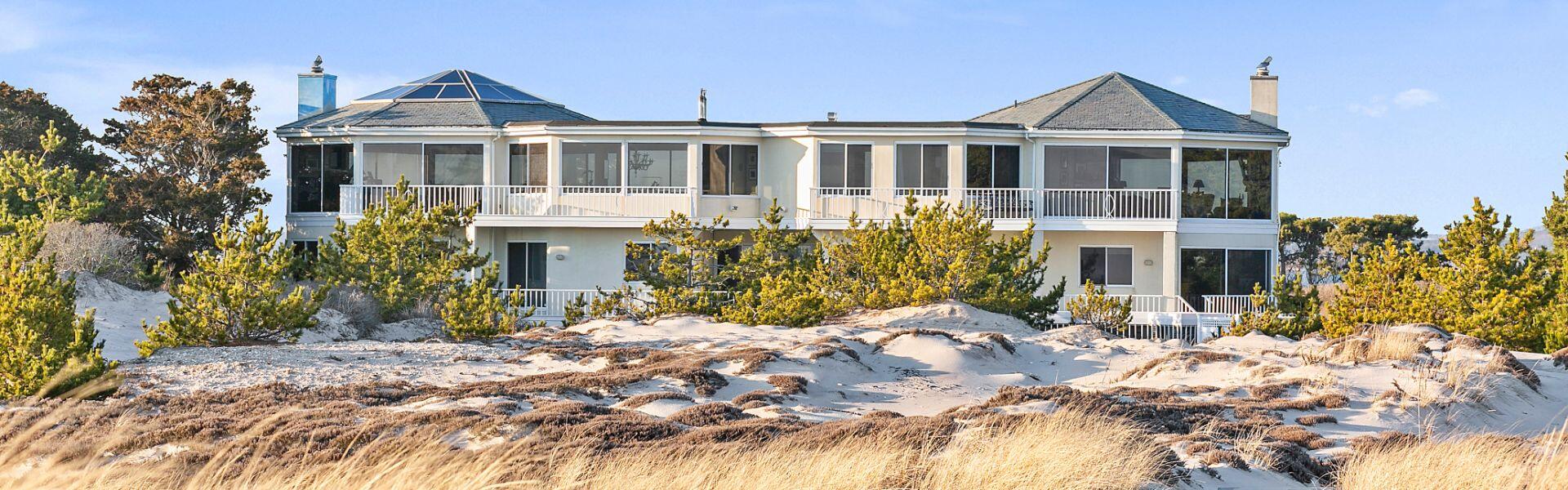 Located along Meadow Lane positioned away from public access with extraordinary panoramic ocean to bay views. Over 4 acres with 200 feet of frontage. This glamorous home designed of modern architecture is easily expandable given recent approvals. The existing house of approximately 6000 sq. ft. provides for the best in seaside living. Pool, tennis court and a private boardwalk to the Atlantic Ocean white sand beachfront are just a few of the amenities that make this a superb buying opportunity for the discriminating buyer waiting in the wings for this special offering.