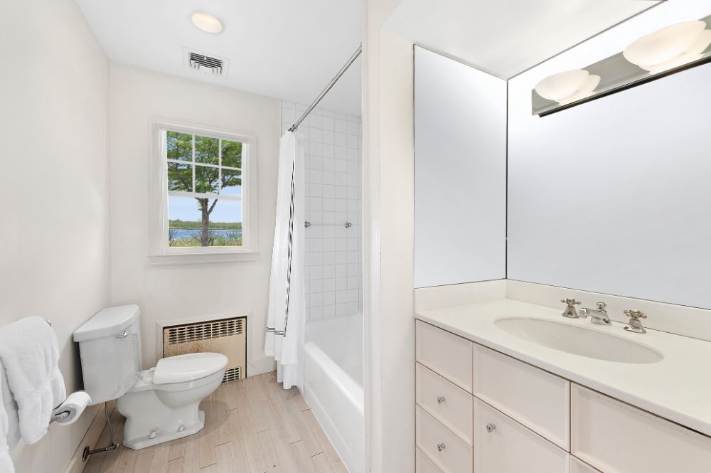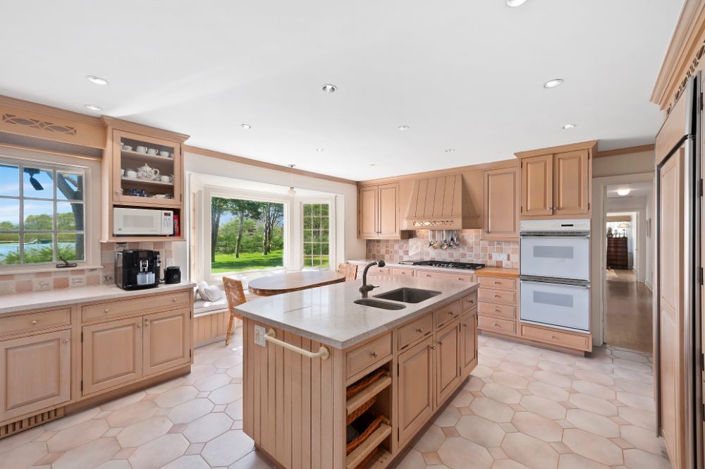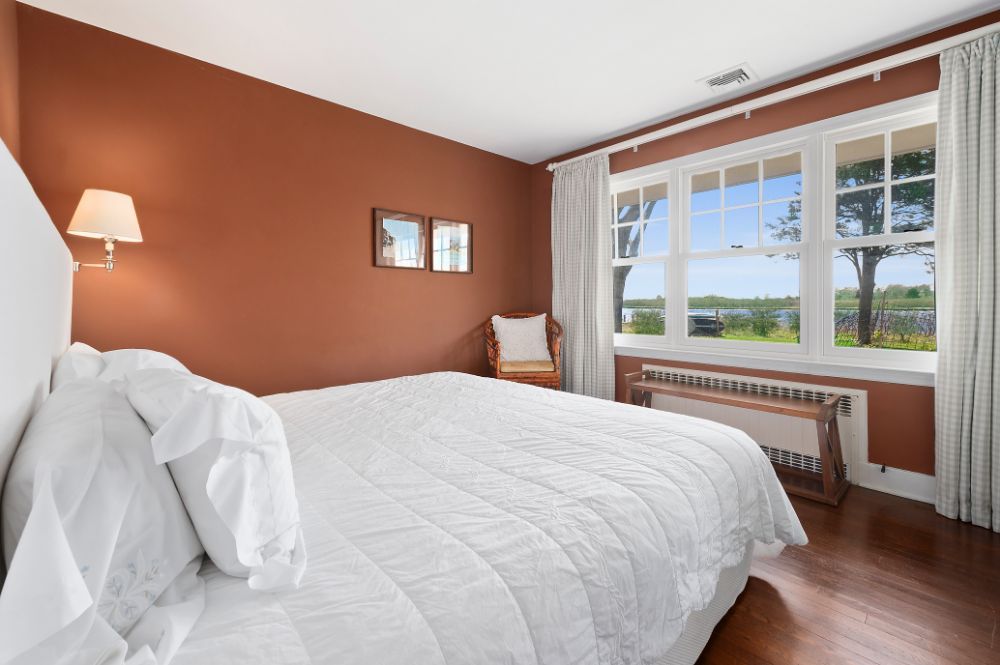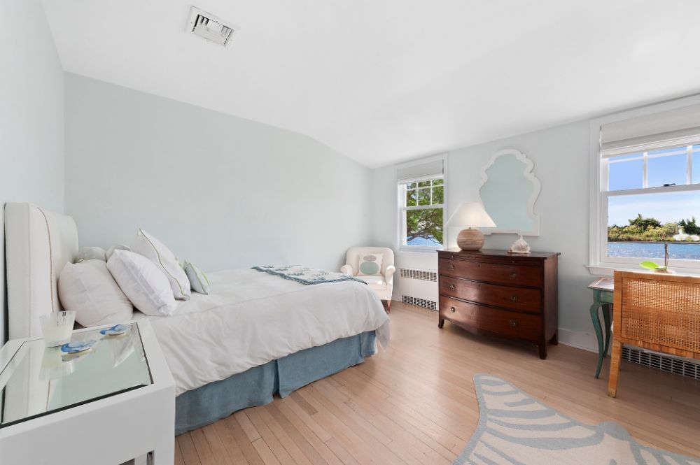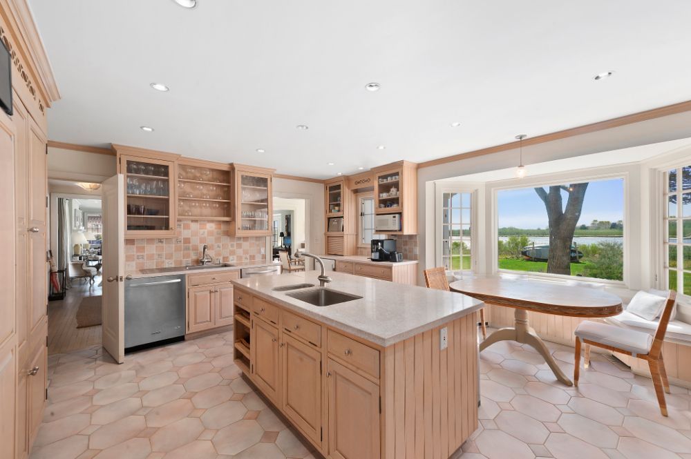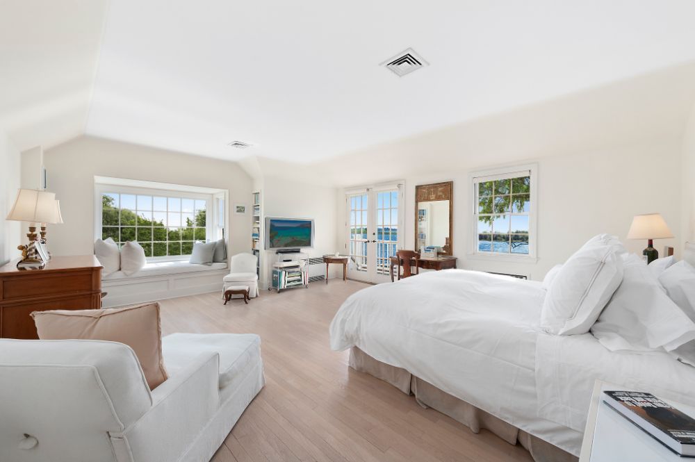 From the home’s intimate entry off the meandering, crushed stone drive, guests are led through the foyer to a living room where blonde hardwood floors and pristine pale walls allow the magnificent views beyond to take center stage. An enormous hearth ensures even the chilliest evenings will be spent in cozy comfort, while the graciously open floorplan denotes its sprawling appeal. The French doors open to the utopian outdoor living space featuring Taylor Creek views and an established landscape. The cabana room is just off the living room. The glassed walled enclave showcases the pool with its charming brick and bluestone patio and spectacular water views. The home offers a wonderfully inviting kitchen replete with modern appliances and warm stone accents. A den, mudroom, laundry, ensuite guest accommodations, two additional family bedrooms, powder room, and a full bath complete the first level.