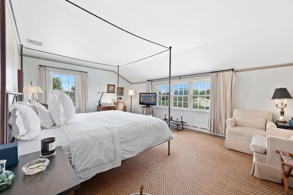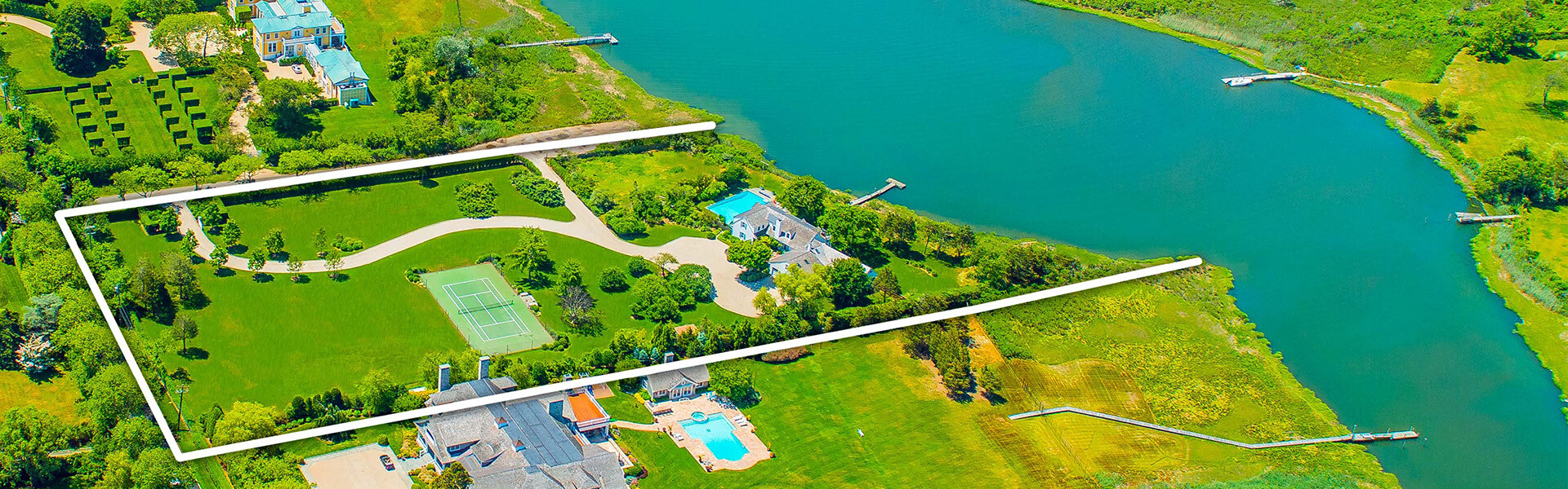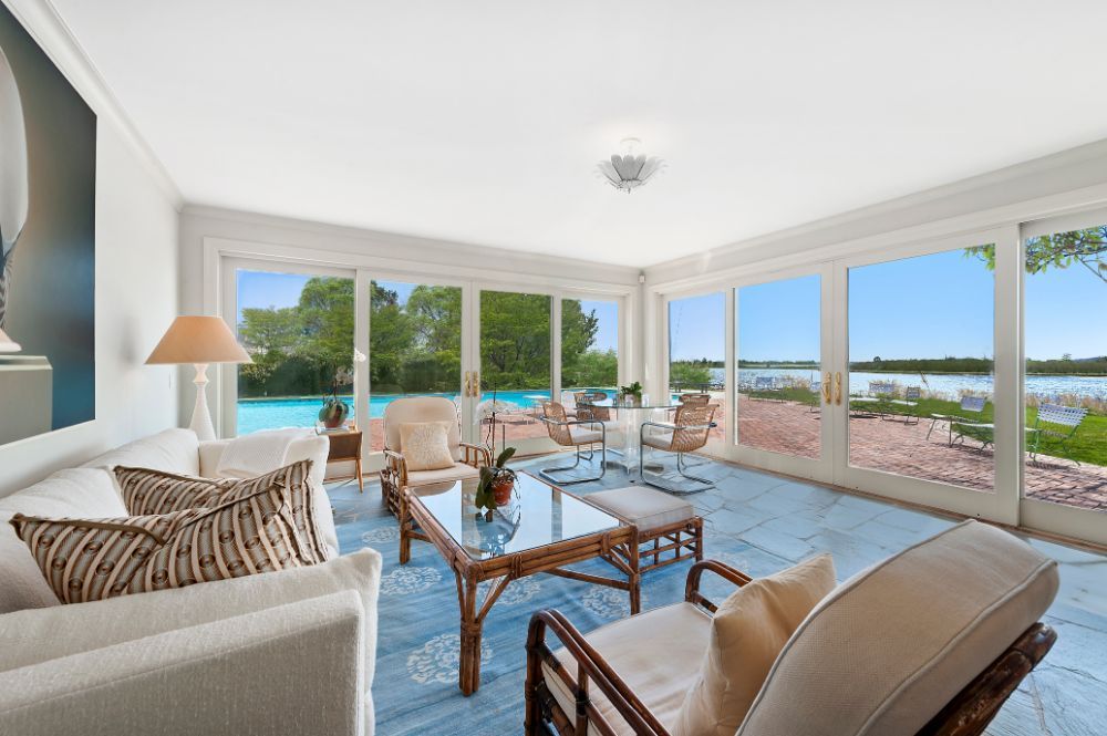 Nestled within Southampton Village’s coveted estate area, this shingle-style summer colony “cottage” is close to the shores of the Atlantic Ocean with sprawling frontage on Taylor Creek. Set back from public access and featuring sensational sunsets, a waterside pool, boat dock, and tennis court, this six-bedroom home is on 4.4 acres of property.