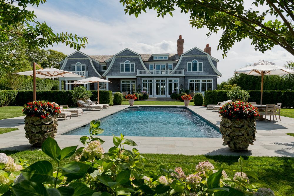 Just listed south of the Highway in Water Mill is this arguably perfect and quintessential country Hamptons home. Behind the Hedges and custom gates lies this perfect three level shingle style residence. An elaborate boxwood courtyard sets the tone for “what will be” on the inside of this pristine manse. A grand entry foyer with a 30 foot ceiling leads one to beautifully appointed rooms with interior architectural design by Ferguson and Shamamian AIA, executed to the highest quality by master craftsmen, Wright and Company and interior design by Brian J. McCarthy . High-ceilinged public rooms, paneled library, fabulous kitchen and a gorgeous dining room are just a few of the glamorous first floor features. An elevator to all three floors enables easy access to the spectacular master suite of rooms and generous guest suites. French doors across the back of the house leads one to the covered porch, terraces, oversized gunite pool, pool house and award winning Edmund Hollander gardens. Just Listed and offered decorator furnished at $12,950,000.