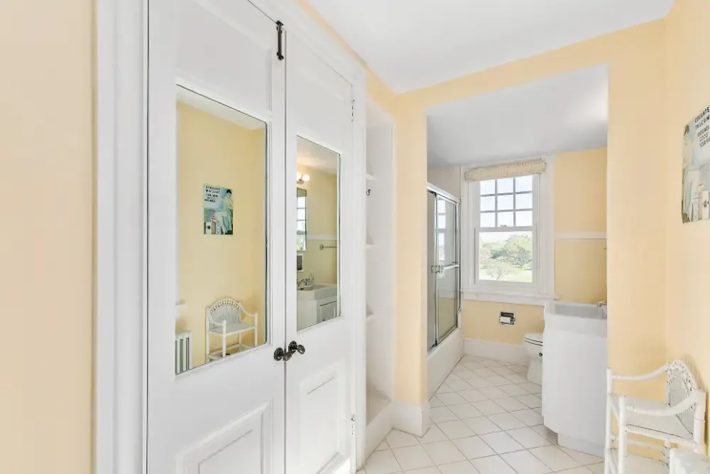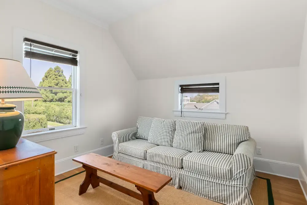 Nestled in the highly desirable enclave of FAIR LEA and situated just south of Southampton’s iconic Gin Lane, this property is one of the few homes fortunate enough to have a deeded path leading directly to the Atlantic Ocean. As you pass through the white gates, you are transported back to the cherished era of the Hamptons, when this house, named Clover Top, was built in 1883. Since then, several additions and upgrades have modernized the home for the 21st century. Upon entering the first floor, you are greeted by a welcoming foyer featuring a stunning fireplace and a hand-carved staircase. The spacious Living Room and Dining Room, both with fireplaces, are perfect for year-round entertaining and open onto French doors that lead to a large, sunlit wrap-around porch, complete with steps that descend to the garden and heated gunite pool. The den serves as an ideal home office, boasting custom bookcases and large windows that fill the space with natural light. A second staircase in the rear foyer leads to two en-suite bedrooms and the primary bedroom, which features a fireplace and an oversized bathroom. The third floor includes a generous 20 x 14 bedroom with two full-size beds, while three additional bedrooms and two bathrooms provide ample accommodations for family and guests. For staff or visiting guests, there is a beautifully renovated suite of rooms above the garage, comprising a bedroom, living area, and full bathroom. The wraparound porch overlooks the expansive yard and well-placed pool, perfect for enjoying sunny afternoons and ocean breezes. The rear foyer features a cabana with an outdoor shower, a convenient amenity after a day at the private ocean beach. Part of Alfred Nelson’s Fair Lea compound—one of six original cottages—this home presents a rare chance to own a piece of Southampton’s rich history. Centrally located near beach clubs, tennis clubs, and just a short distance from Main Street and Jobs Lane, this property is available by appointment only.