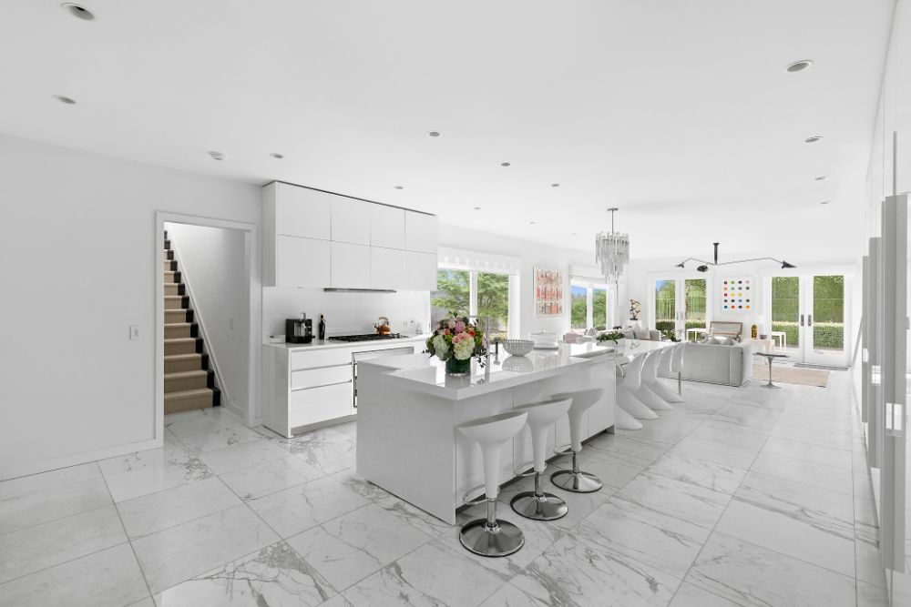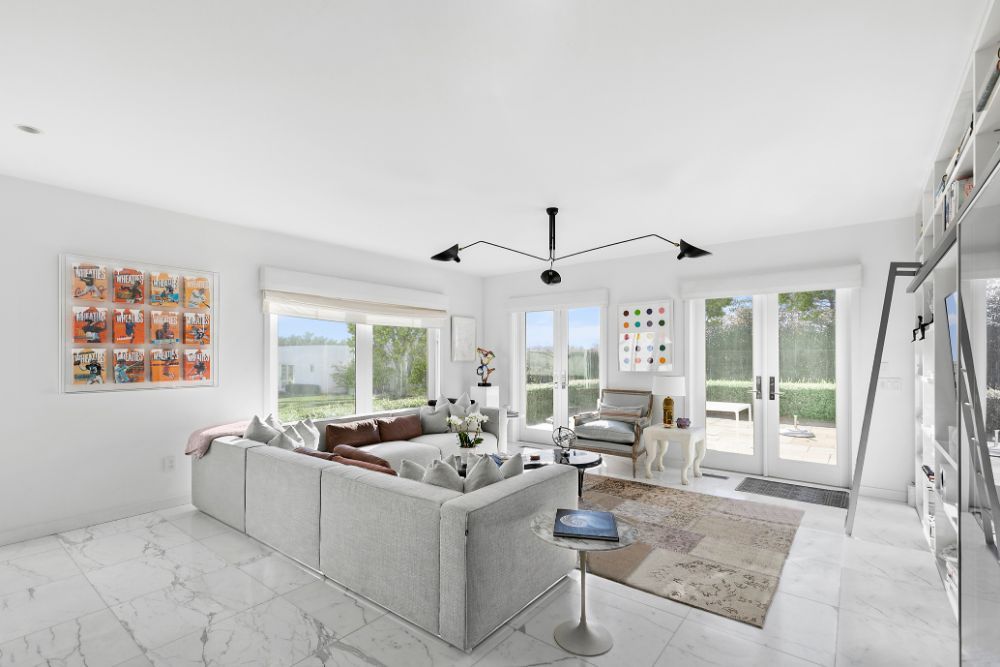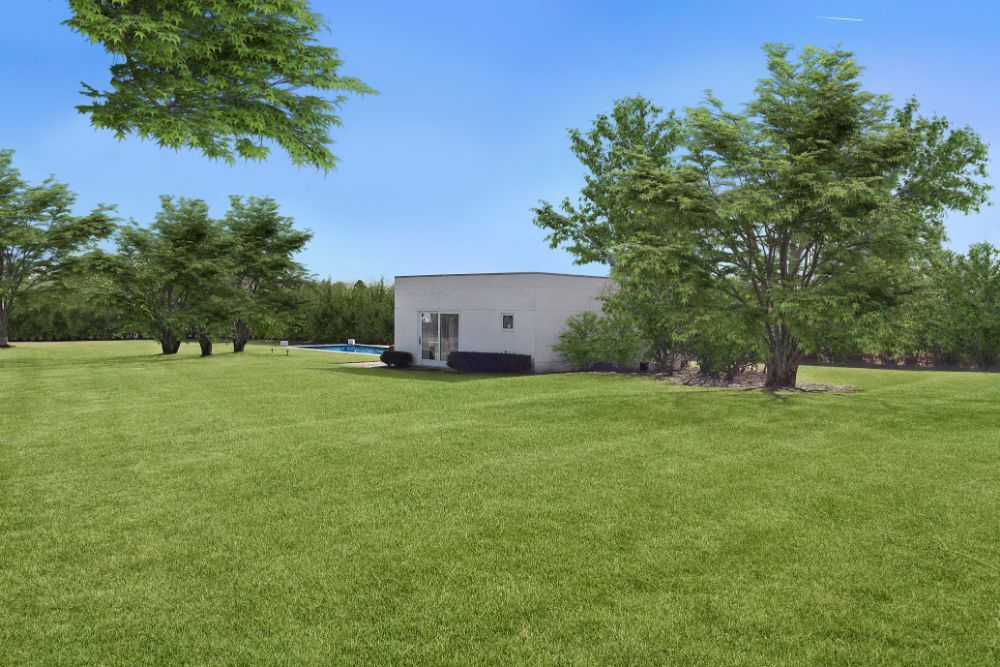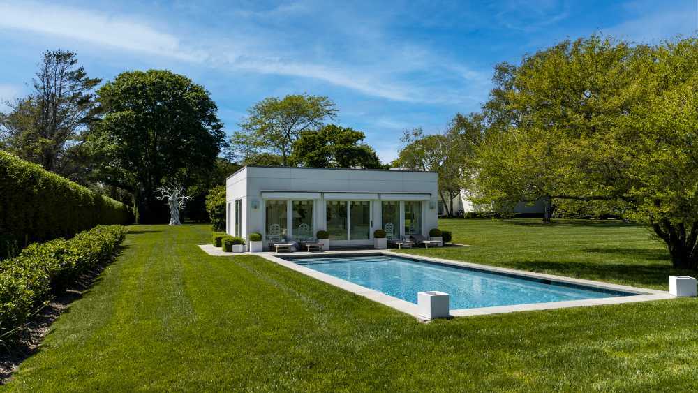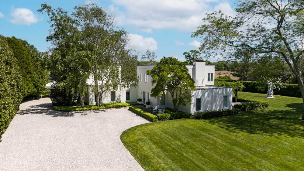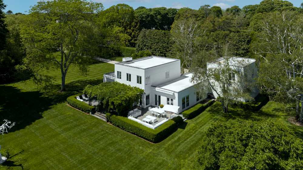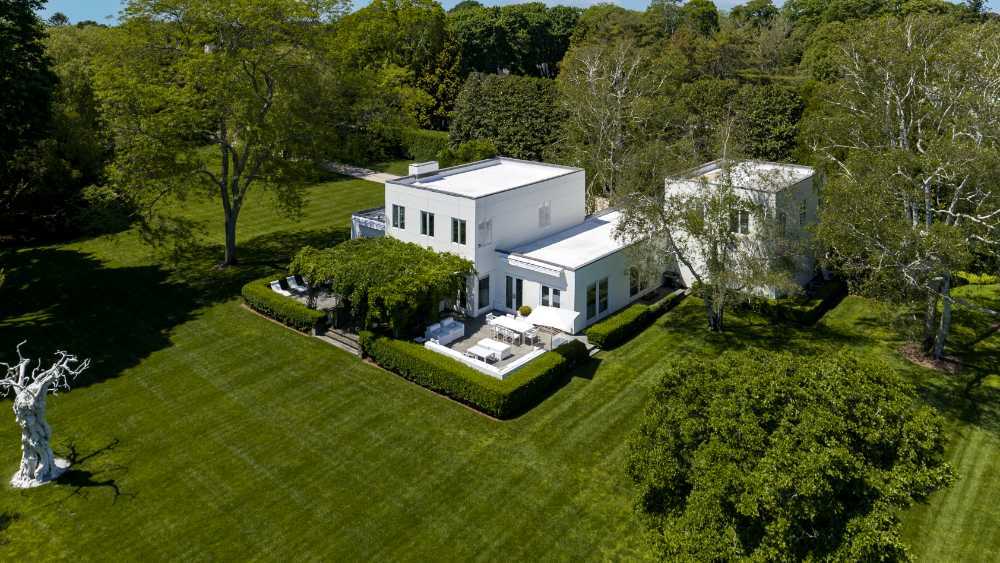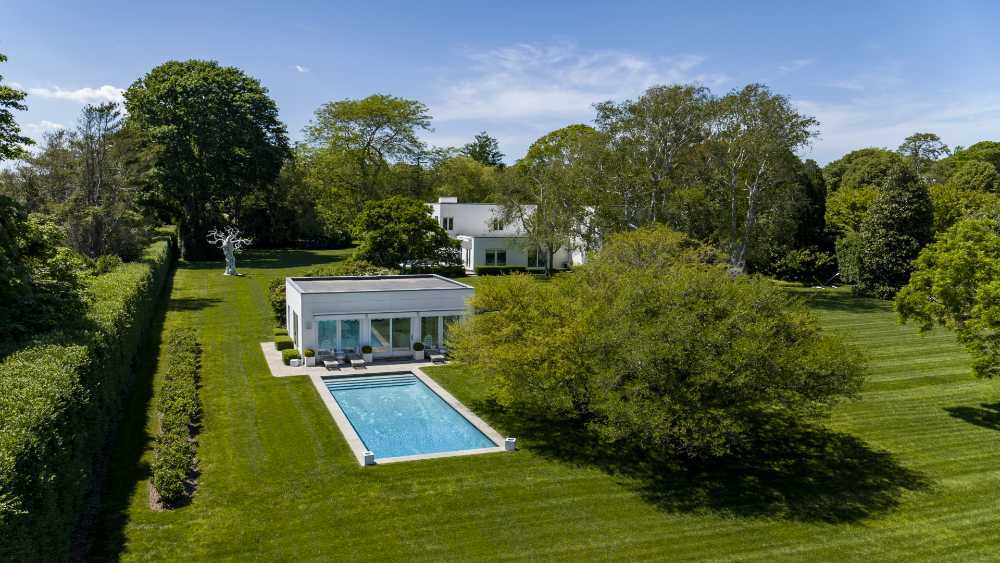 Approached by at 675 foot private drive, this 3.3 acre estate affords complete privacy and natural beauty set amidst a dramatic architect designed landscape. The tranquil property boasts a lush expanse of lawn, an unusual collection of holly trees, and many rare species of evergreens. The five bedroom, five bathroom modern home was recently renovated without compromising the sense of space and aesthetic of the property. Also included is a renovated pool house and guest house all part of the original estate. Notable interior design features include Elle Decor and Town and Country Magazines. There are beautiful slate terraces overlooking the landscape with commanding second story views of the planted farm fields beyond. The property also includes a heated gunite pool set amongst the structured landscape. Located within a short distance to the ocean and amongst the heart of the historic Estate Section.