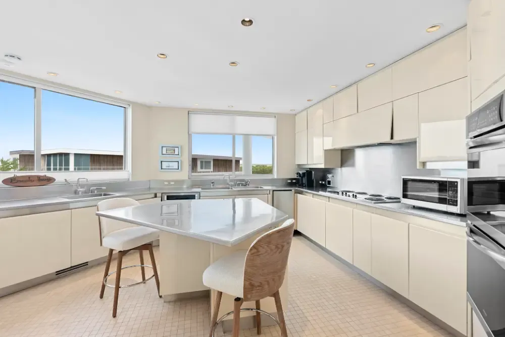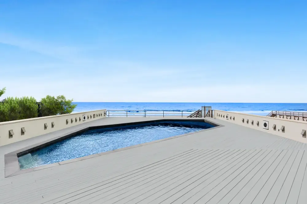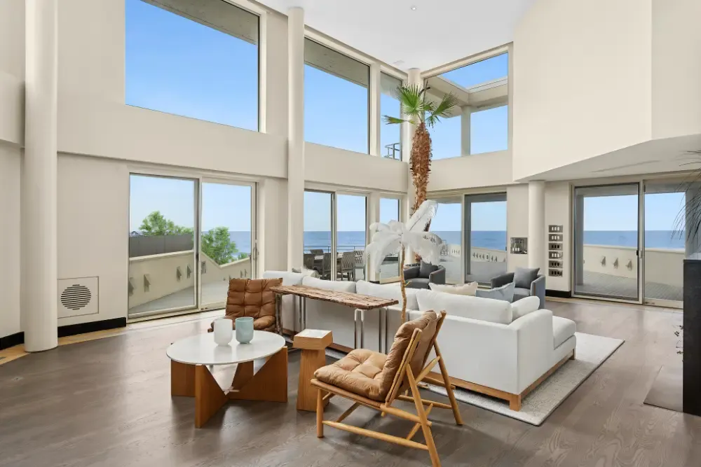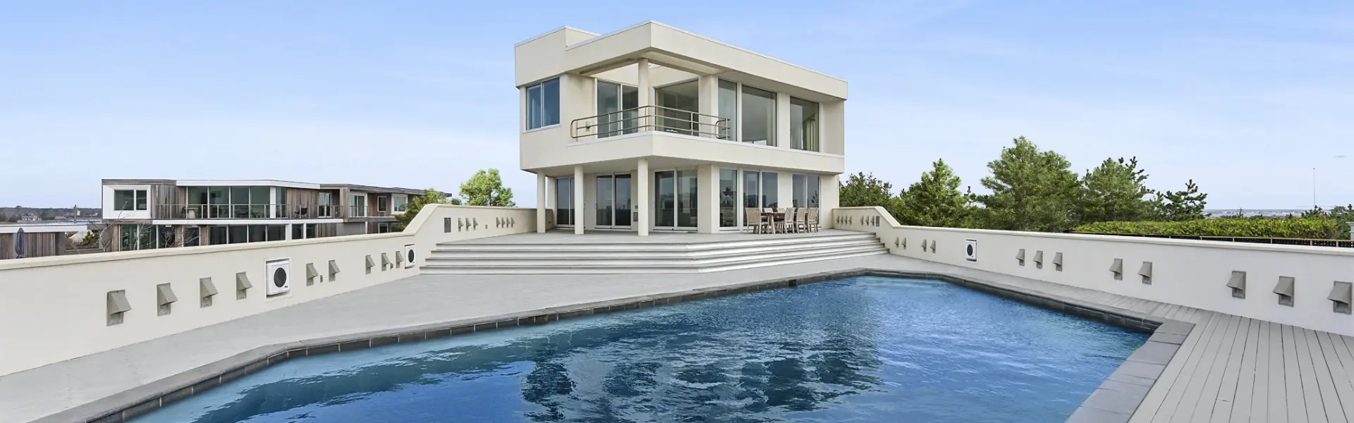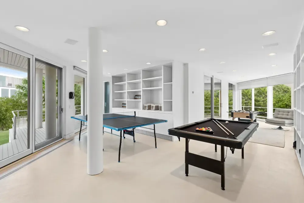Experience summer by the ocean in a stunning 10,000 square foot, three-story coastal contemporary home featuring 107 feet of beach frontage, providing access to the incredible sunrises and sunsets that only this property can deliver. Expansive windows allow for abundant natural light and extraordinary water views, creating a resort-like ambiance complete with an open living room and cozy fireplace, dining room with patio exposures, game room, and a media room. The primary suite epitomizes tranquility, offering complete privacy on its own level with two private decks, two bathrooms, and a spacious loft. Seven additional en-suite bedrooms are perfectly positioned across the remaining two levels, providing guests with a peaceful retreat after enjoying the vibrant offerings of the Hamptons, including nearby restaurants, boutiques, and performing arts in Quogue and Westhampton Villages.