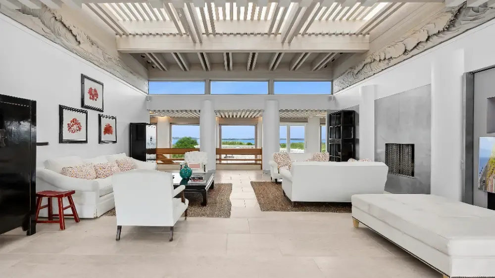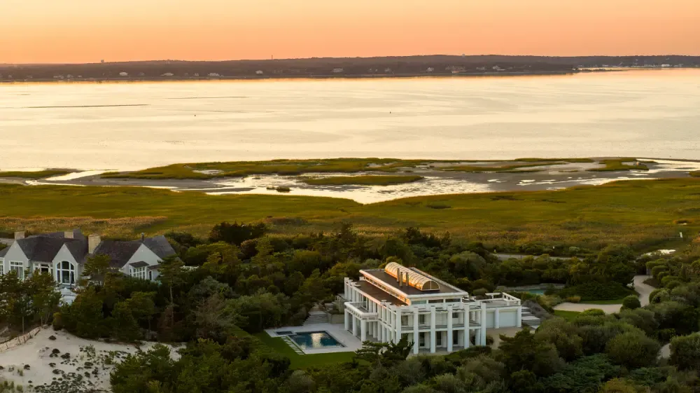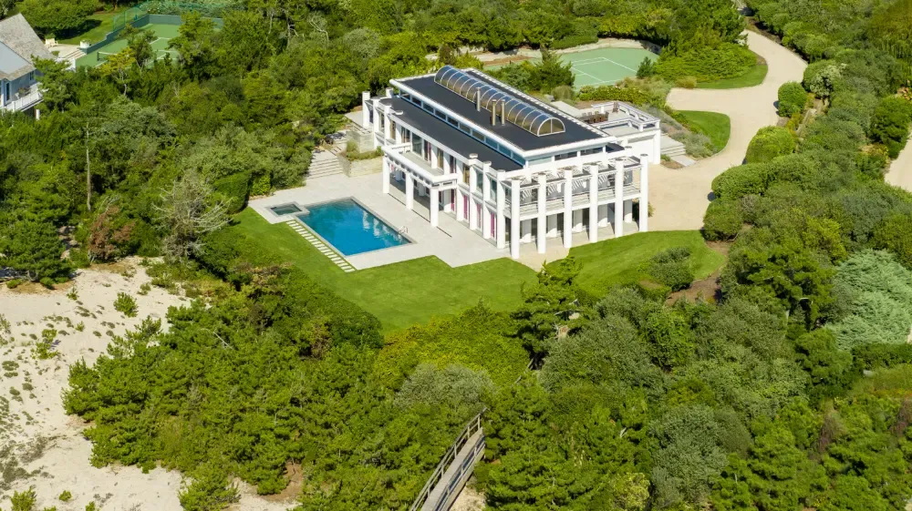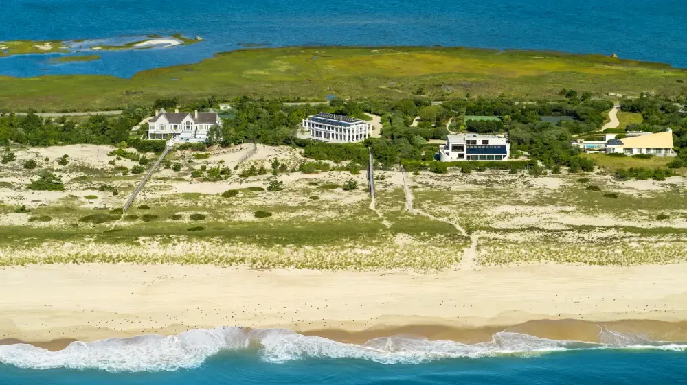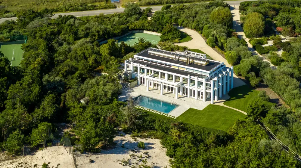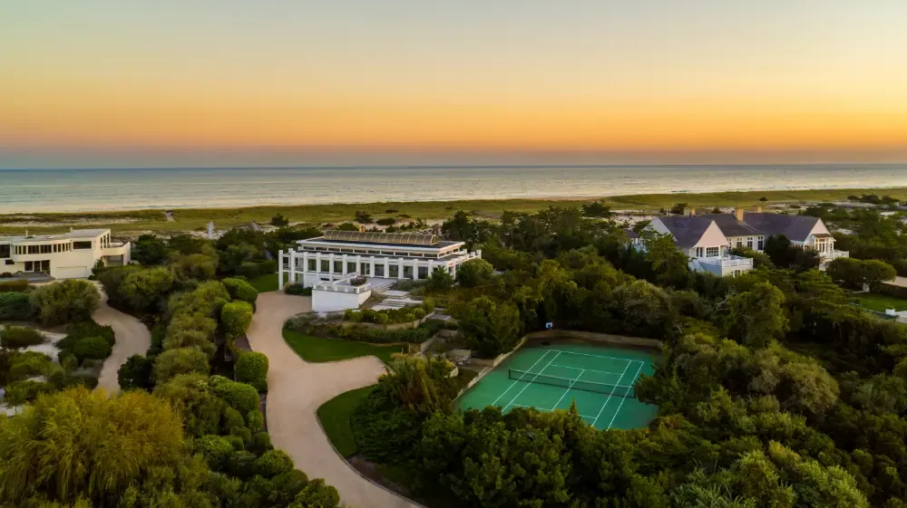 A dramatic seaside residence with spectacular views of the Atlantic Ocean and Shinnecock Bay from sunrise to sunset, is sited on a 4.5 acre property and 200 feet of white sand beach frontage. This residence offers high-style beachfront living on two levels and includes a spacious primary suite. The refreshed kitchen and terraces provide for afternoon lunches and starlit dinners while listening to the ocean waves close by. There are 5 guest suites, two separate lounge living room areas and an interior bar all viewing out through glass walls to the dunes and water views. The oceanside pool offers extensive terracing for lounging away the afternoons whilst the tennis court provides for working up a sweat before the dip in the ocean. This home of unique architecture is positioned amongst miles of pristine coastline in world class Southampton Village where Boutique shops, superb restaurants and Art Galleries are moments away. Easily accessible to all forms of transportation and nearby New York City. Offered Exclusively