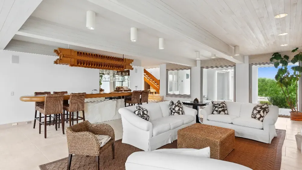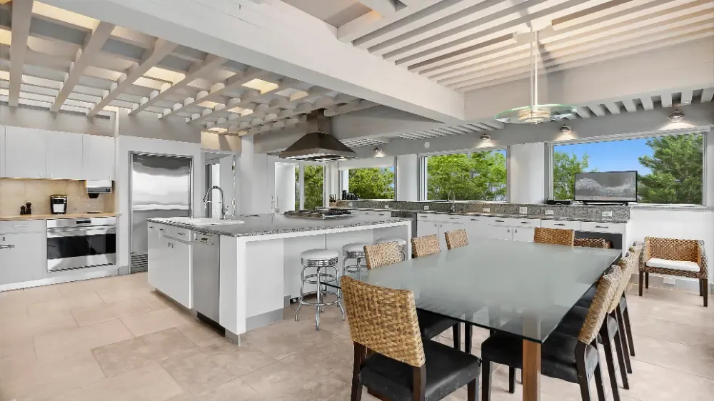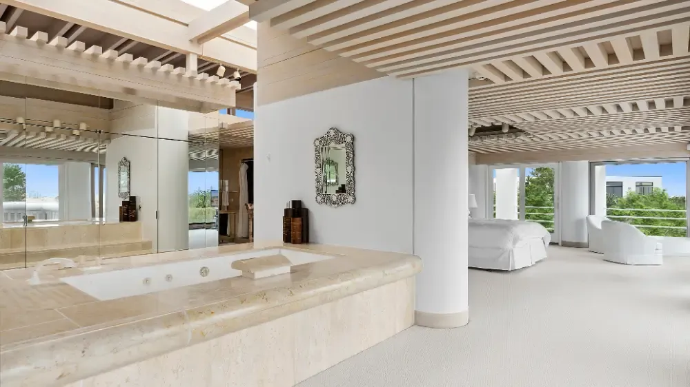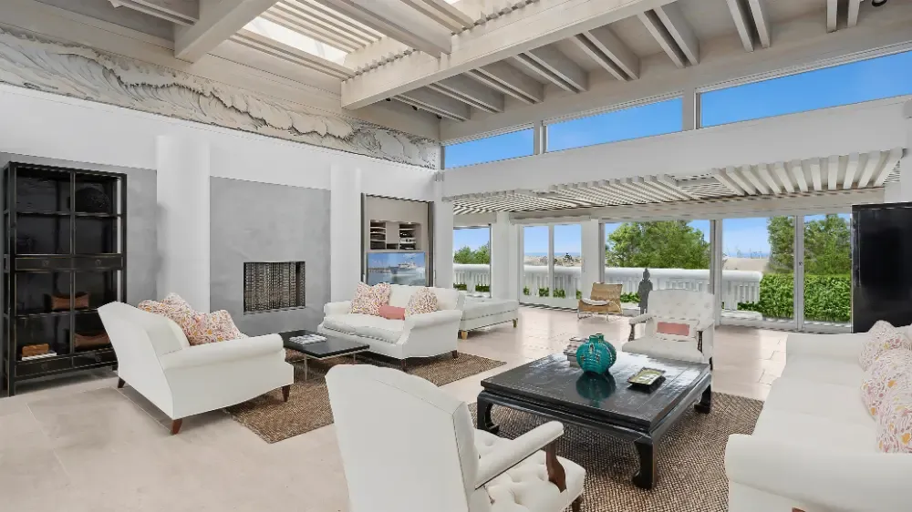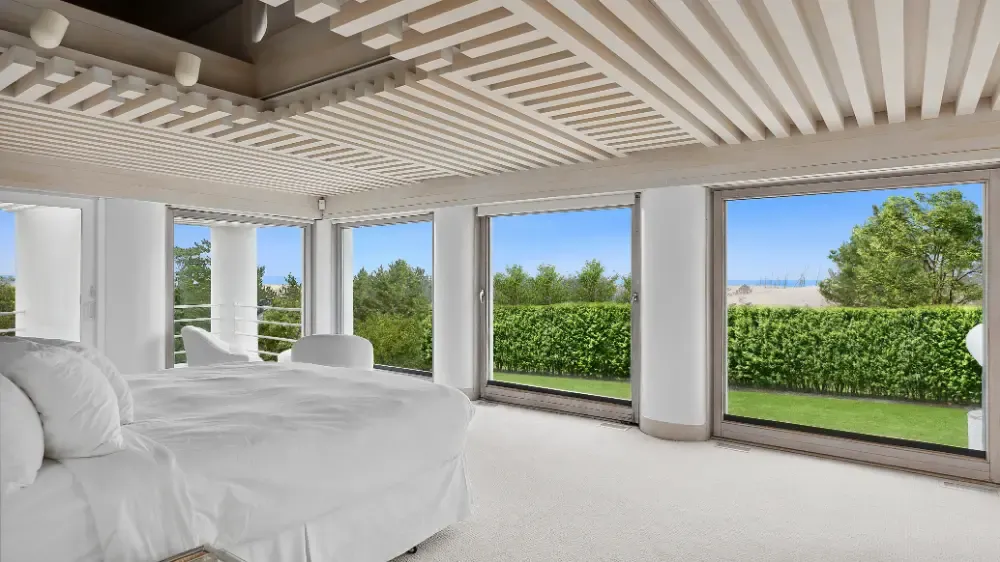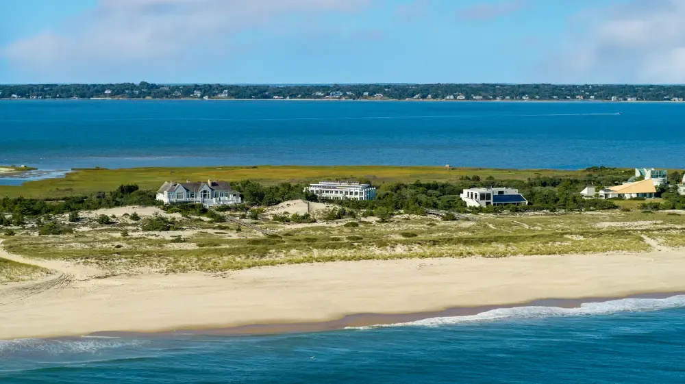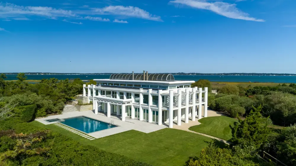 A dramatic seaside residence with spectacular views of the Atlantic Ocean and Shinnecock Bay from sunrise to sunset, is sited on a 4.5 acre property and 200 feet of white sand beach frontage. This residence offers high-style beachfront living on two levels and includes a spacious primary suite. The refreshed kitchen and terraces provide for afternoon lunches and starlit dinners while listening to the ocean waves close by. There are 5 guest suites, two separate lounge living room areas and an interior bar all viewing out through glass walls to the dunes and water views. The oceanside pool offers extensive terracing for lounging away the afternoons whilst the tennis court provides for working up a sweat before the dip in the ocean. This home of unique architecture is positioned amongst miles of pristine coastline in world class Southampton Village where Boutique shops, superb restaurants and Art Galleries are moments away. Easily accessible to all forms of transportation and nearby New York City. Offered Exclusively