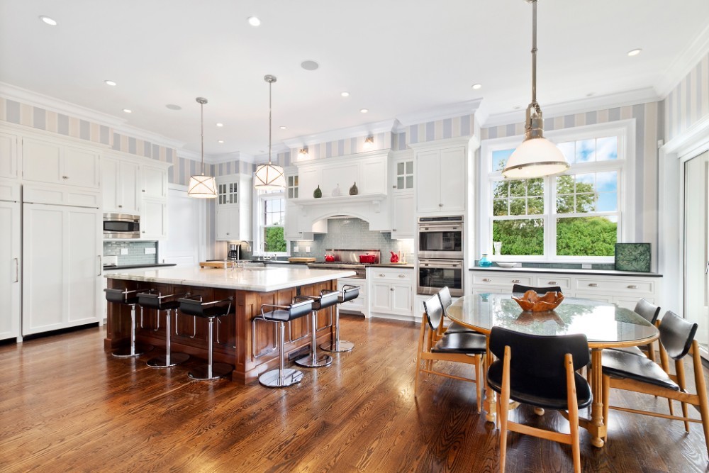 Within the Southampton estate section featuring a private path to Halsey Neck Beach and gated entry stands this nearly 8,000-square-foot shingled post modern designed by Michael Conroy architect with interiors by Marshall Watson. The home’s six bedrooms with a deluxe master suite with a sundeck are complemented by generous living and entertaining spaces with the modern conveniences of a Crestron system, Sonos and 4K. A screened porch with fireplace, outdoor living room with fireplace, private gardens and meticulous landscapes, inviting inground 25×45 swimming pool and 12×12 spa with waterfall make for spectacular outdoor entertaining. A 3-car garage, distant pond views and ocean breezes round out this fantastic property.