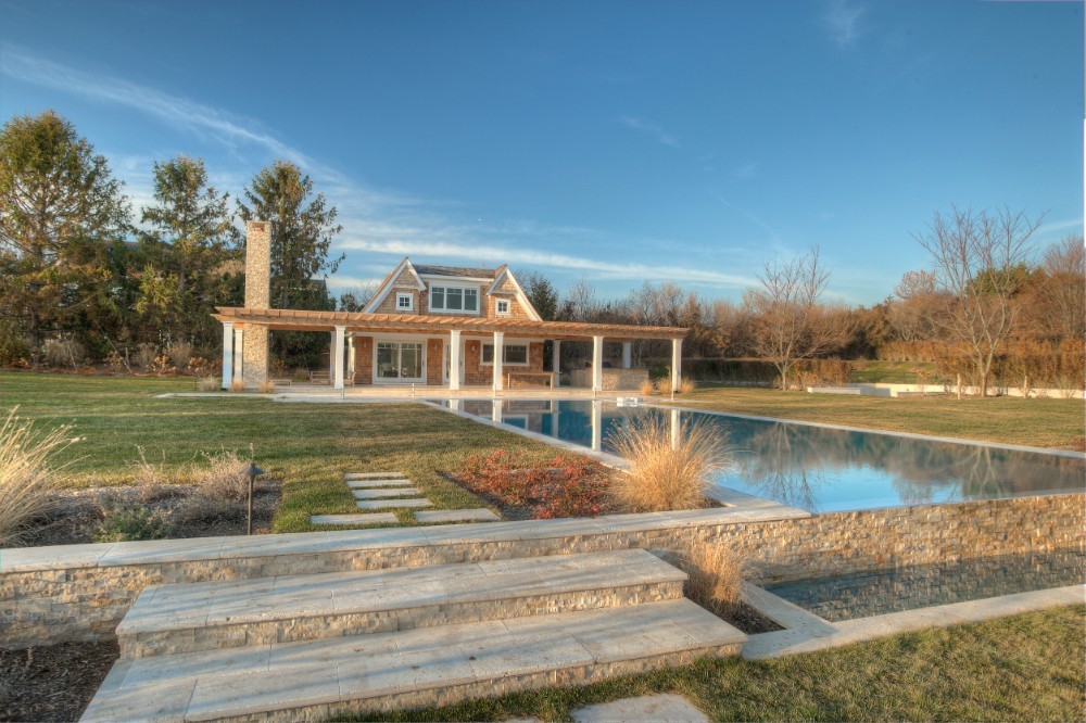 This Water Mill residence sited on over 2.1 acres on a quiet cul-de-sac is centrally located to the village and ocean beaches. Its new traditional styling is fresh and chic with a sunlit double height living room which opens to the outdoor entertaining areas. The home also features a library/media room with adjoining powder room, den with fireplace, formal dining room and large eat-in kitchen. With eight bedrooms including the master bedroom suite with gas fireplace and first floor guest suite there is ample room for guests. The lower level boasts a 10-seat theater, game room with pool table and wet bar, wine cellar and room for staff. Outside you find dining terraces, outdoor grill, swimming pool, pool house and all-weather tennis court. Retreat to the pool house to enjoy the lounging room with fireplace, play room, powder room and outdoor shower.