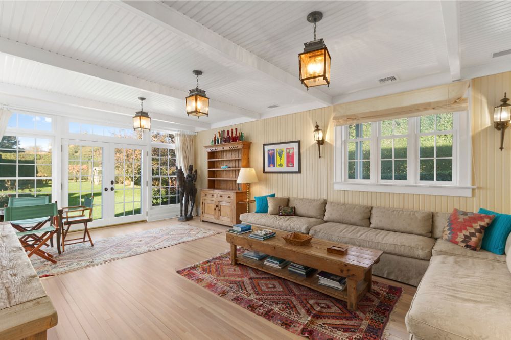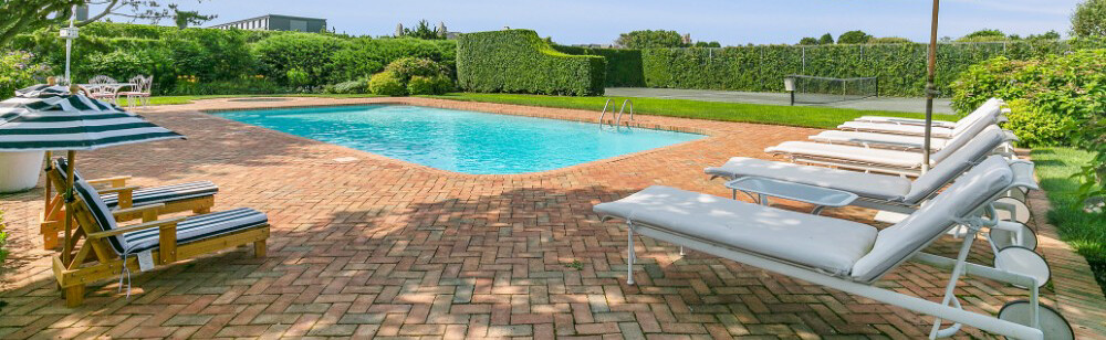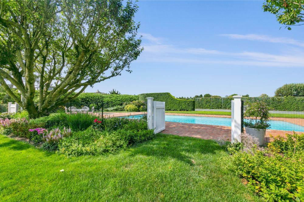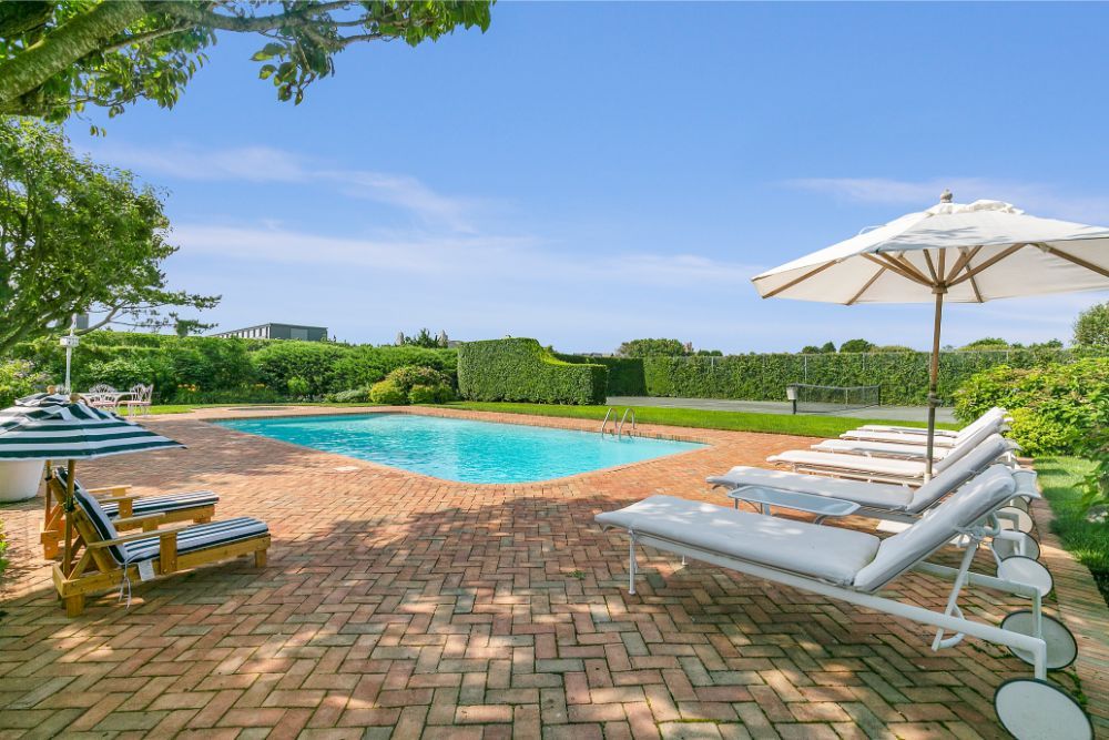 This 9 bedroom, 7 bathroom beach house has a well designed floor plan for relaxation and entertaining. Located well within a compound, this property offers your own ocean beach access- just in front of the lush green lawn and flower gardens. There are water views from many rooms and many balconies from which to hear the sounds of the waves. A large covered porch leads you to your heated gunite pool and tennis court. Decorated in colorful beach colors and tasteful art, this home offers you the perfect vacation spot for your Summer in the Hamptons.