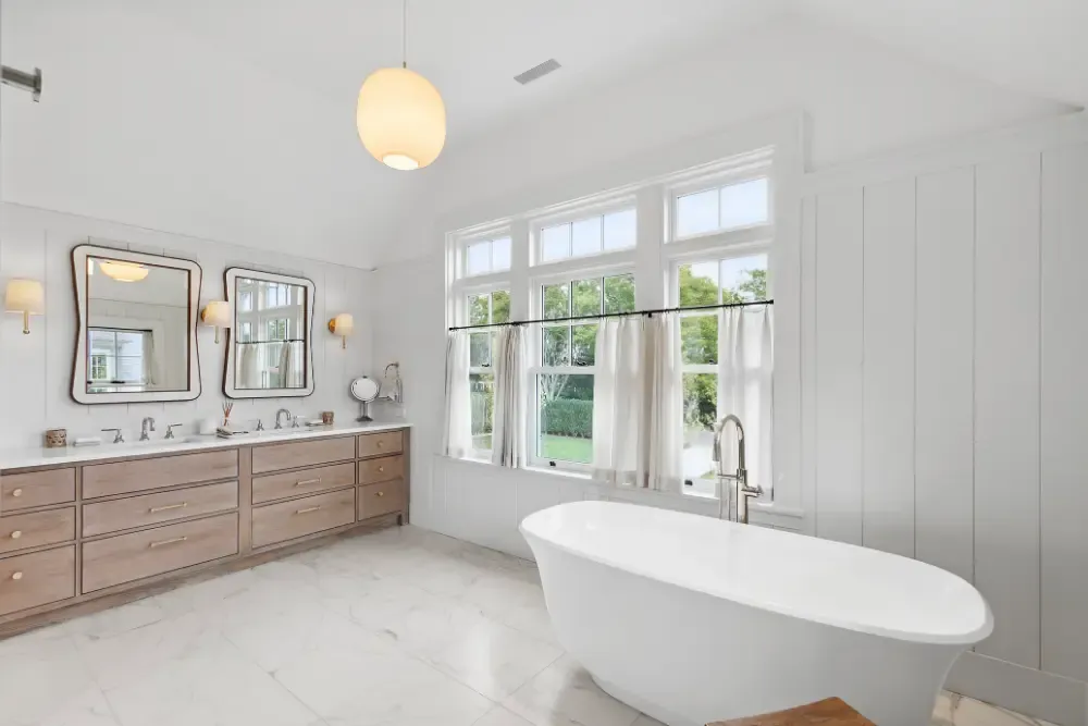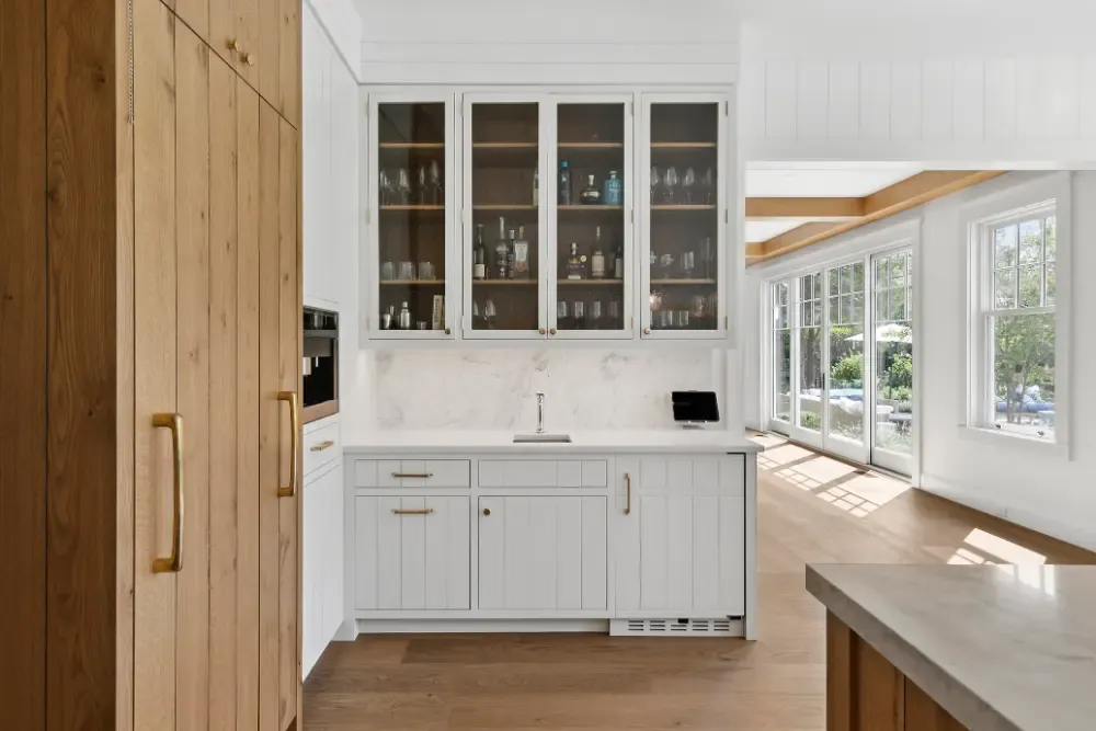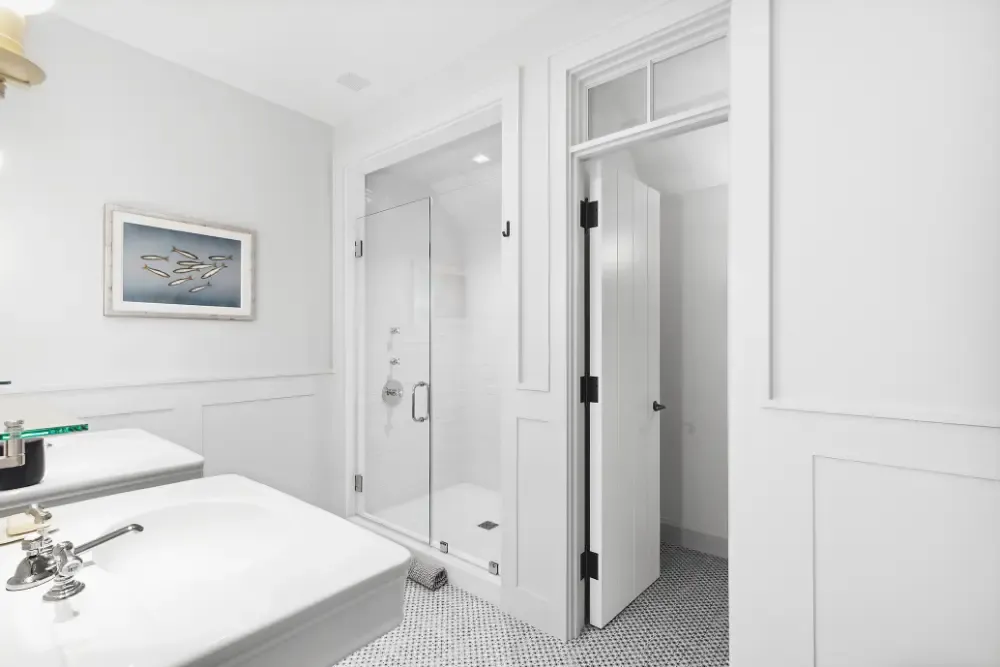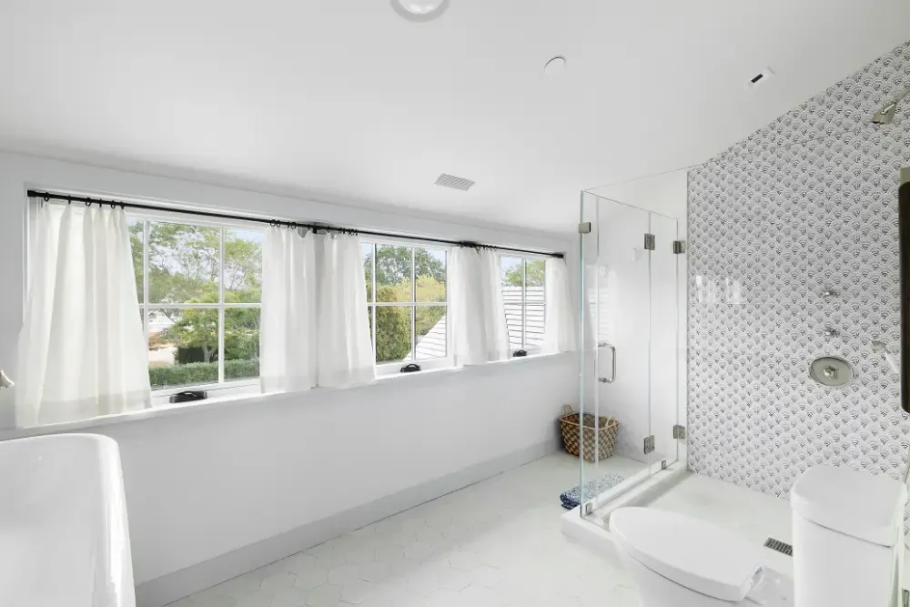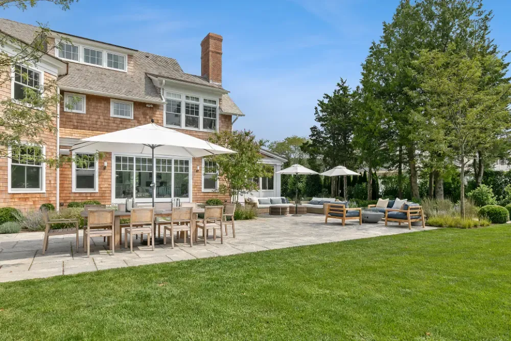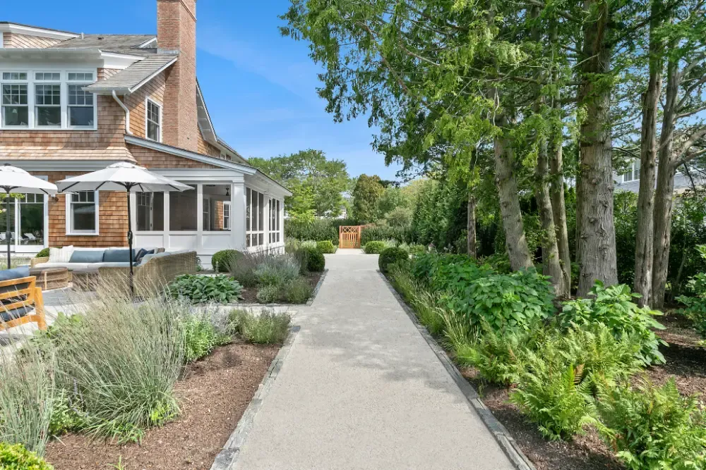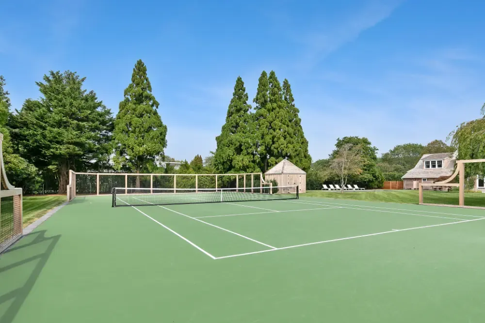 A stunning gated entrance welcomes you to the parking court of this newly constructed Arts and Crafts-style home. The first floor greets family and friends with an open living and dining area that overlooks beautifully landscaped gardens. The adjacent, well-equipped kitchen serves as a centerpiece, catering to the needs of even the most discerning chefs. A den/library provides a tranquil space that can be used as an office or a secondary media room. On delightful Hamptons evenings, the screened-in porch embodies the essence of summer relaxation, offering access to the rear dining terrace and lounge areas. The second floor boasts four en-suite bedrooms, including a primary suite complete with a spacious bathroom featuring a soaking tub and elegant shower. Two additional bedrooms are thoughtfully situated on the third floor, sharing a full bathroom. The expansive lower level, measuring 1,300 square feet, serves as an essential retreat, featuring a gym, media and game room, a half bathroom, and a second laundry facility. Every detail has been meticulously curated with top-notch amenities and designer furnishings throughout the home. Outside, enjoy the 1.38-acre property, which features a generous lawn, a perimeter of mature landscaping, and captivating west-facing sky views. The newly constructed 50-foot-long pool adds to the allure, while a conveniently located tennis court sits at the rear of the property. Additional highlights include an outdoor shower/cabana bathroom, bike storage with bikes available for tenant use, an attached garage, interior sound, Wi-Fi, and proximity to Atlantic Ocean beaches, fashionable Jobs Lane, and Main Street.