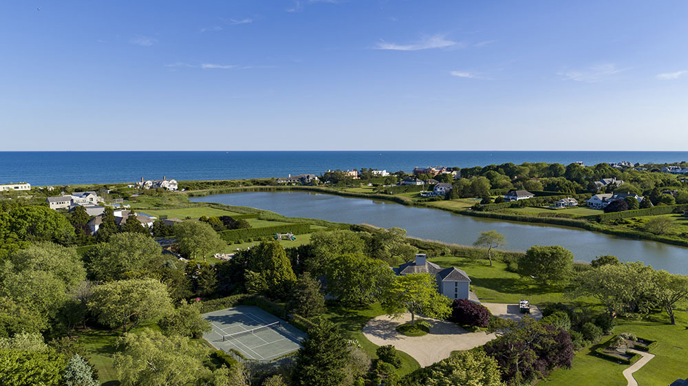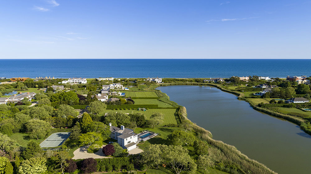 Stunning Pond front Residence with Ocean Views and Private Beach Access. Discover a comfortable, contemporary beach house that offers abundant natural light and breathtaking views, perfectly situated within a private enclave. This exquisite property features six bedrooms and six and a half baths. Enjoy the spacious great room with a fireplace, a dining area, and a chef’s kitchen. Additionally, revel in the beautiful waterside pool with extensive decking and a Har-Tru tennis court.