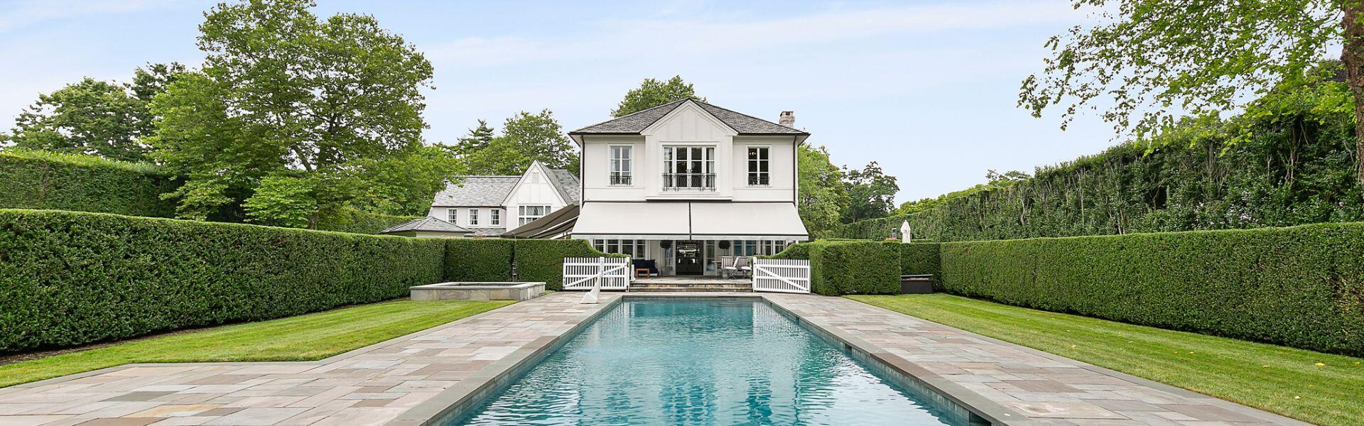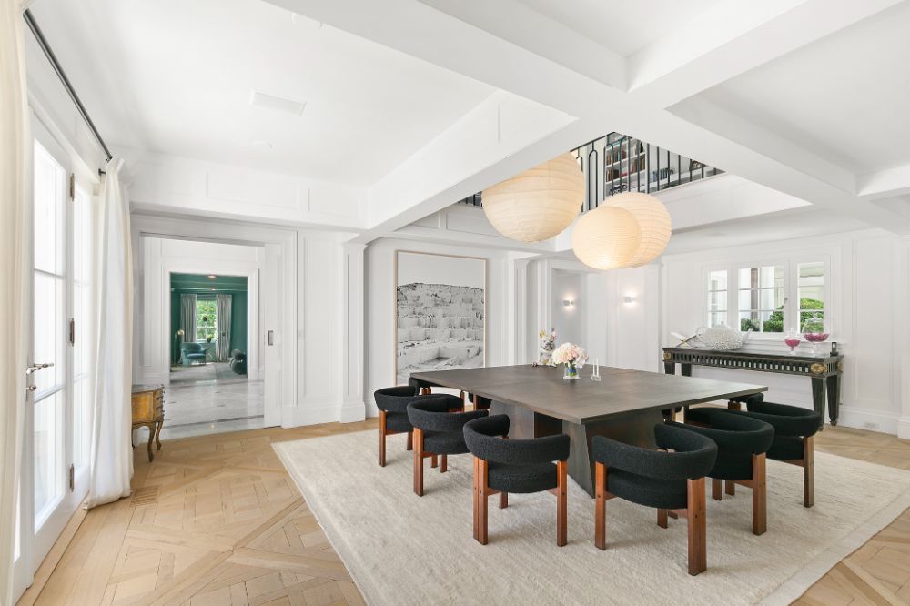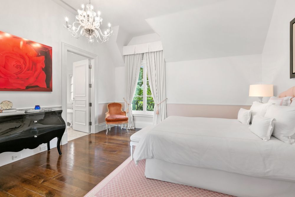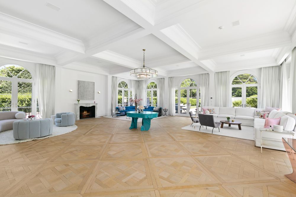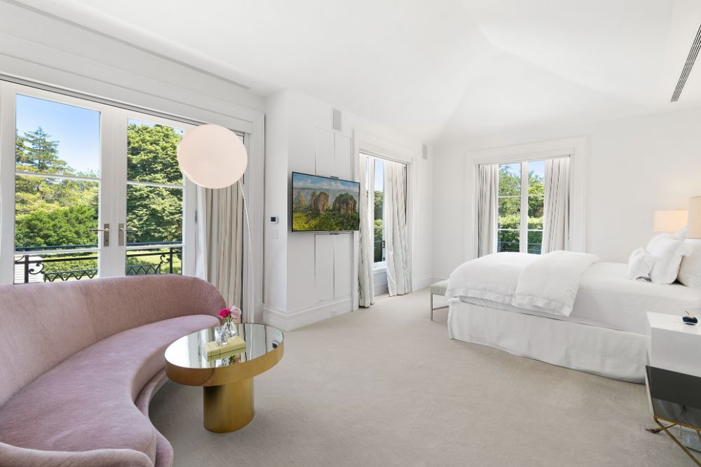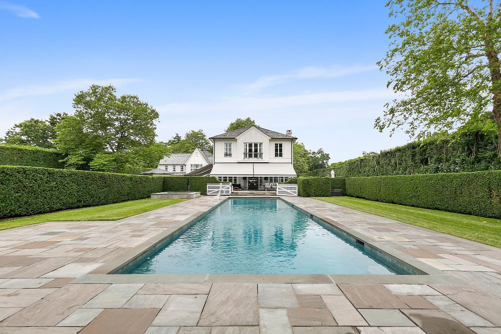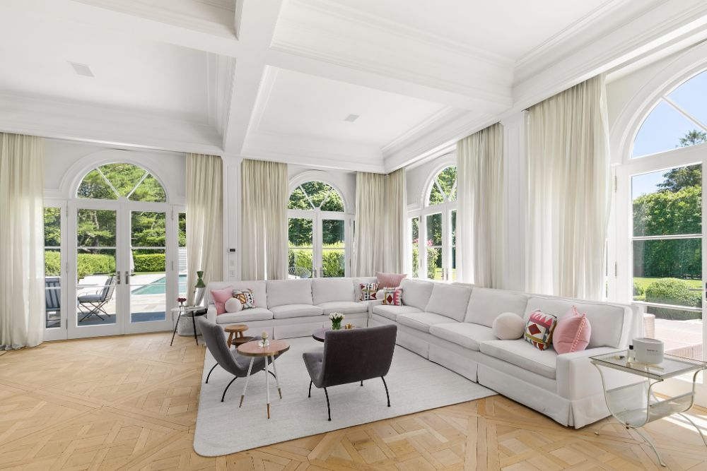 Exceptional home with stunning European Flair is available for rent for two weeks. Contemporary elegance includes a grand foyer with a dual staircases and windows overlooking the grounds, two over-sized and separate living rooms, both accessing special areas of the garden, a very hip sun lounge, a large formal dining room with open balcony and library above, a TV/media room and a new gourmet state-of-the-art kitchen with a large, sunny and inviting informal dining area. There are nine en-suite bedrooms, and guest rooms in a separate wing. The master suite is very private and luxurious with 2 baths and 2 dressing rooms, a study and is surrounded by windows overlooking the grounds. All principal rooms have access to the stone patio surrounded by beautifully landscaped and private grounds. There is a heated swimming pool and a tennis court. Additional rooms include a staff area, a second catering kitchen, a professionally equipped gymnasium and virtual golf practice area. A very capable staff manages the daily routines at the house including housekeeping, grounds and pool care. Beautiful and a truly relaxing environment, this fabulous home will delight even the most discerning.