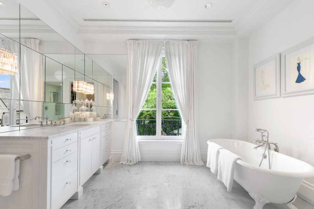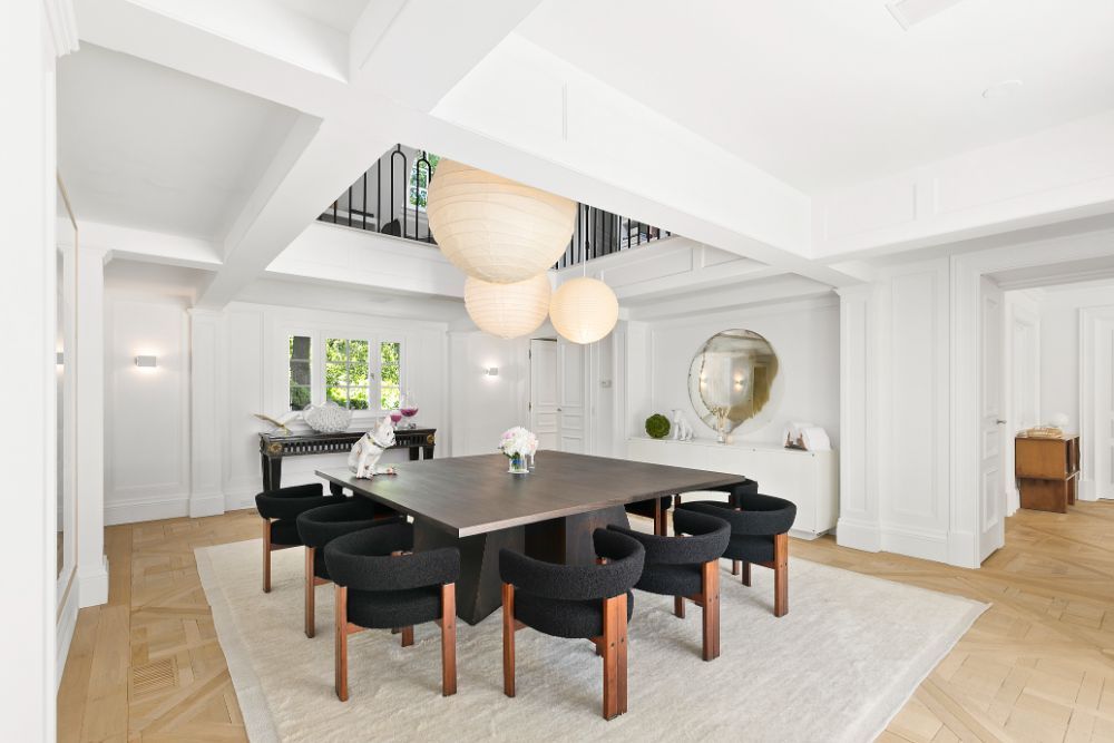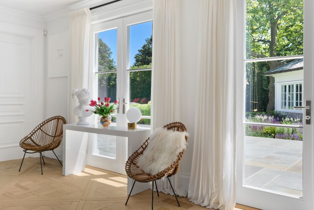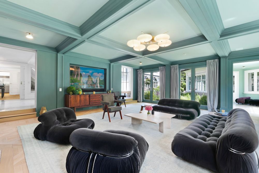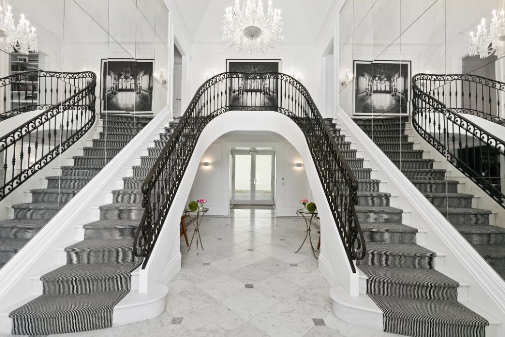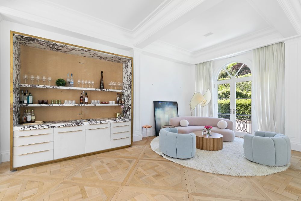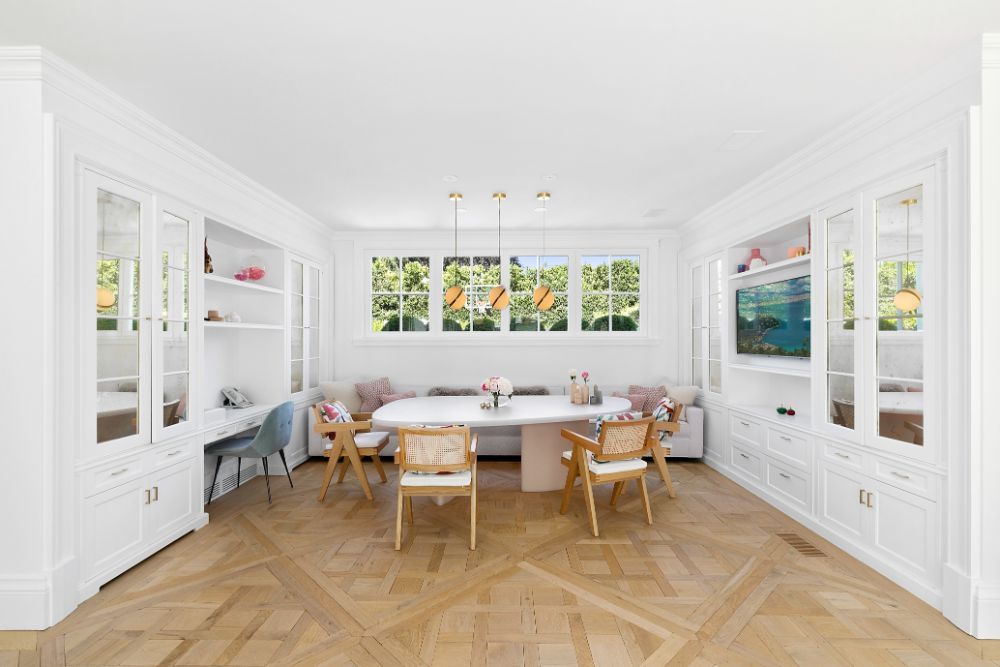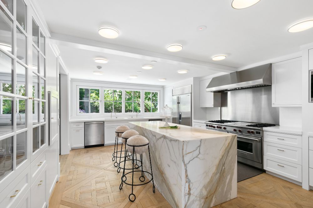Exceptional home with stunning European Flair is available for rent for two weeks. Contemporary elegance includes a grand foyer with a dual staircases and windows overlooking the grounds, two over-sized and separate living rooms, both accessing special areas of the garden, a very hip sun lounge, a large formal dining room with open balcony and library above, a TV/media room and a new gourmet state-of-the-art kitchen with a large, sunny and inviting informal dining area. There are nine en-suite bedrooms, and guest rooms in a separate wing. The master suite is very private and luxurious with 2 baths and 2 dressing rooms, a study and is surrounded by windows overlooking the grounds. All principal rooms have access to the stone patio surrounded by beautifully landscaped and private grounds. There is a heated swimming pool and a tennis court. Additional rooms include a staff area, a second catering kitchen, a professionally equipped gymnasium and virtual golf practice area. A very capable staff manages the daily routines at the house including housekeeping, grounds and pool care. Beautiful and a truly relaxing environment, this fabulous home will delight even the most discerning.