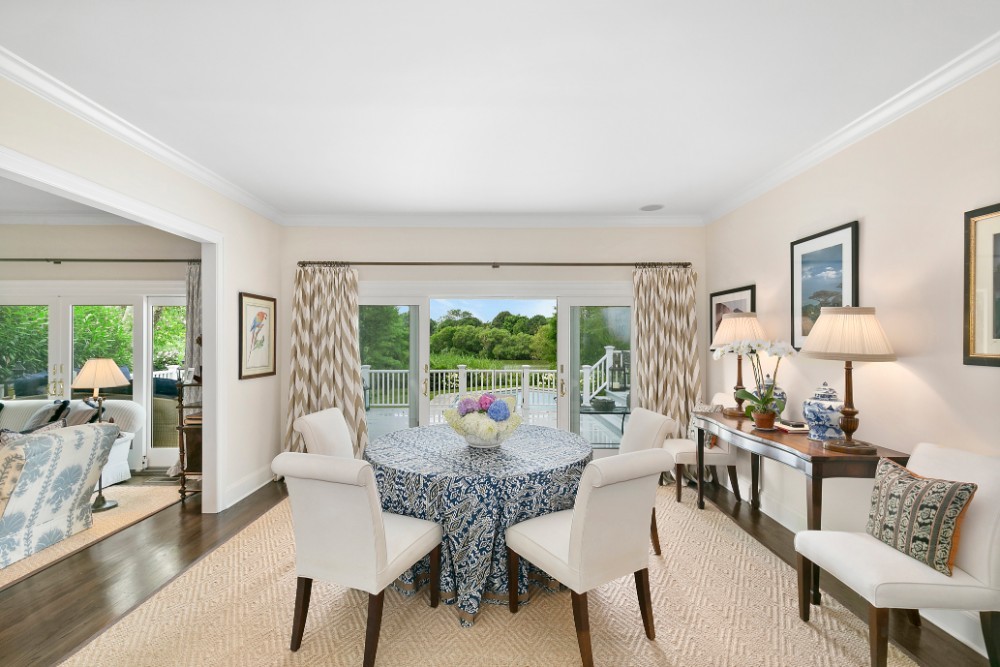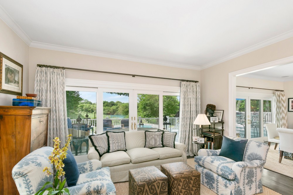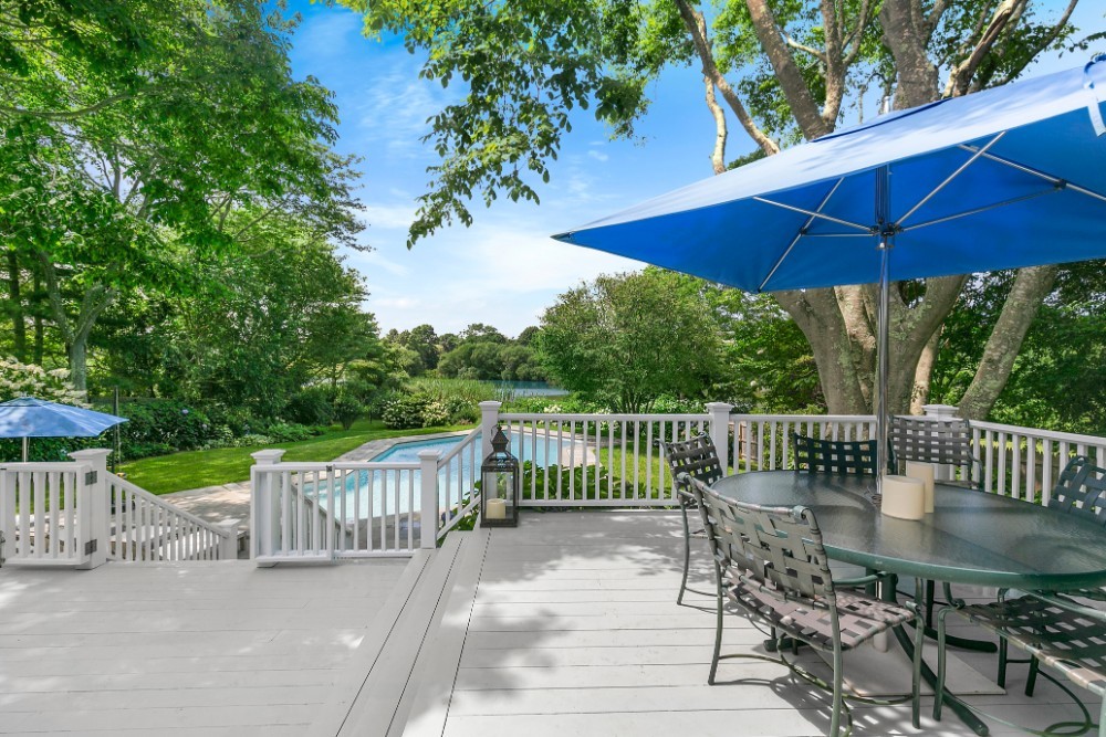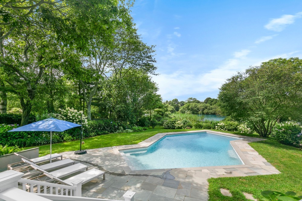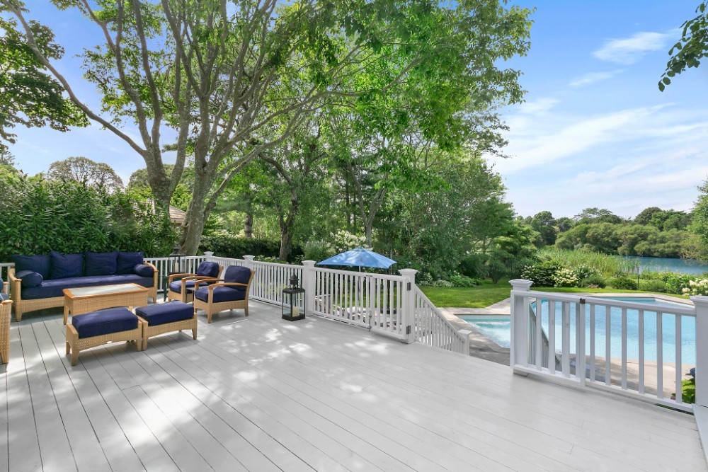 Sequestered down a tree lined driveway you will find this waterfront oasis fronting on Lake Agawam with wonderful sunsets, secret gardens and an ideal summer house with waterside pool within close proximity to Southampton’s village center, Main Street and Jobs Lane. This home has five bedrooms and five and half baths. Sunlit interiors boasting ideal public rooms for entertaining spill out onto the large deck, terrace waterside lawn and pool.