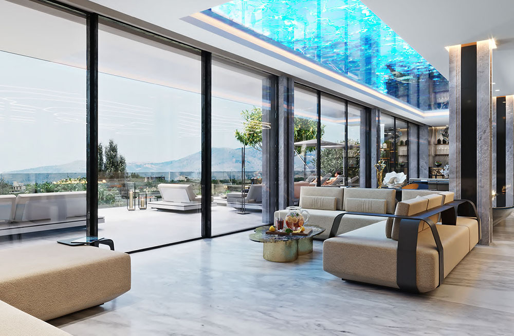 This magnificent property combines luxury, modern style, innovated technologies. And the best materials have been used for the construction paying special attention to the natural textures, stones and wood. The villa is located on an enormous 7435 m2 plot and offers amazing panoramic views of the sea and mountains. Villa Eden comprises of a total of 6 bedrooms, 7 bathrooms and 4 toilets and it is a beautiful fusion of both classic and contemporary styles. The property features new novelties such as a sliding roof in the living room which gives a feeling of infinity and spaciousness.
