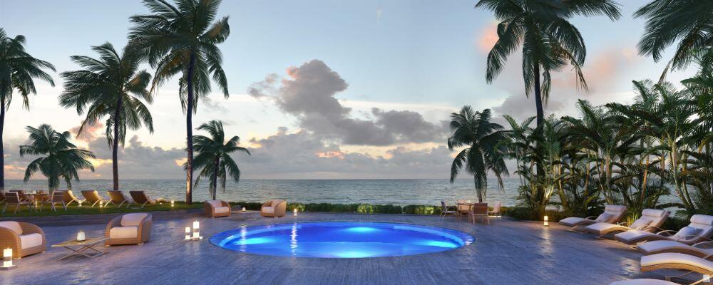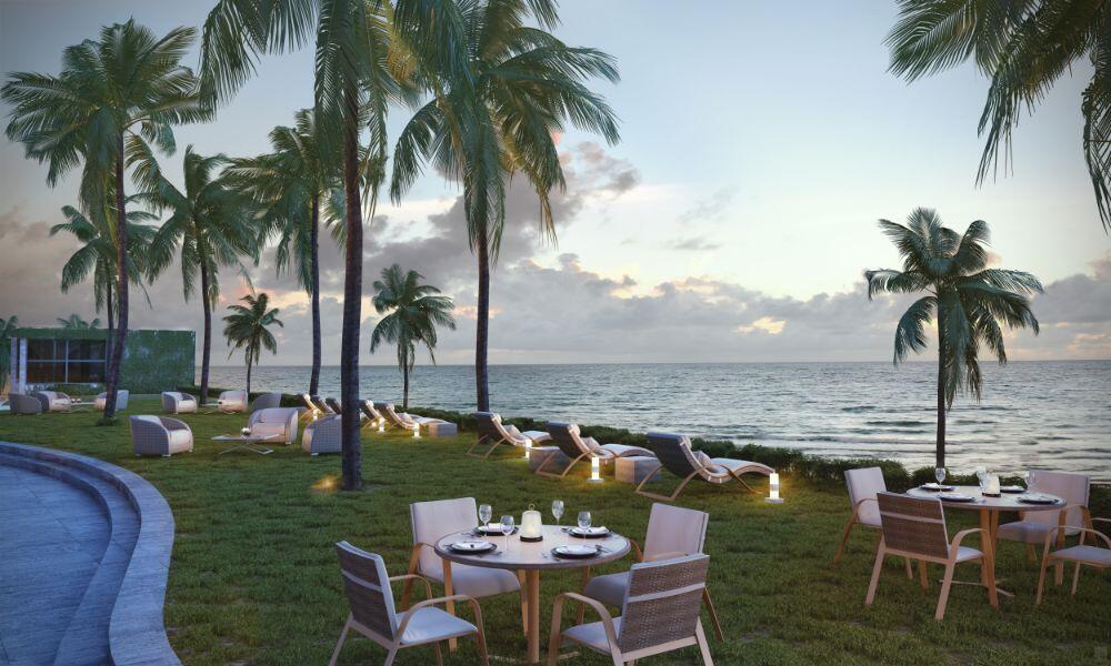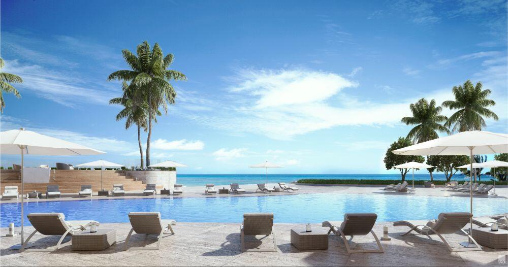 Pelli Clarke Pelli’s contemporary glass tower appears at one with the crystal clear water of the Atlantic Ocean, while transparent terraces allow you to step into a dreamlike space suspended between earth and sky. Along the oceanfront, duplex bungalows with dramatic glass window walls and intimate private outdoor spaces open directly to pristine beaches.