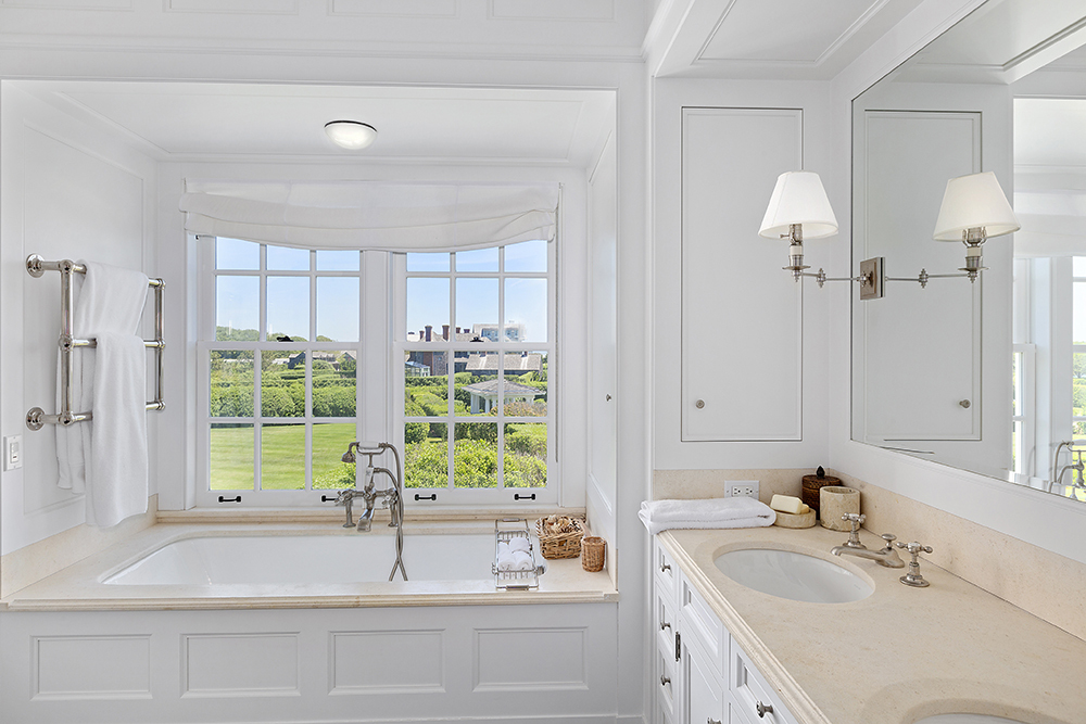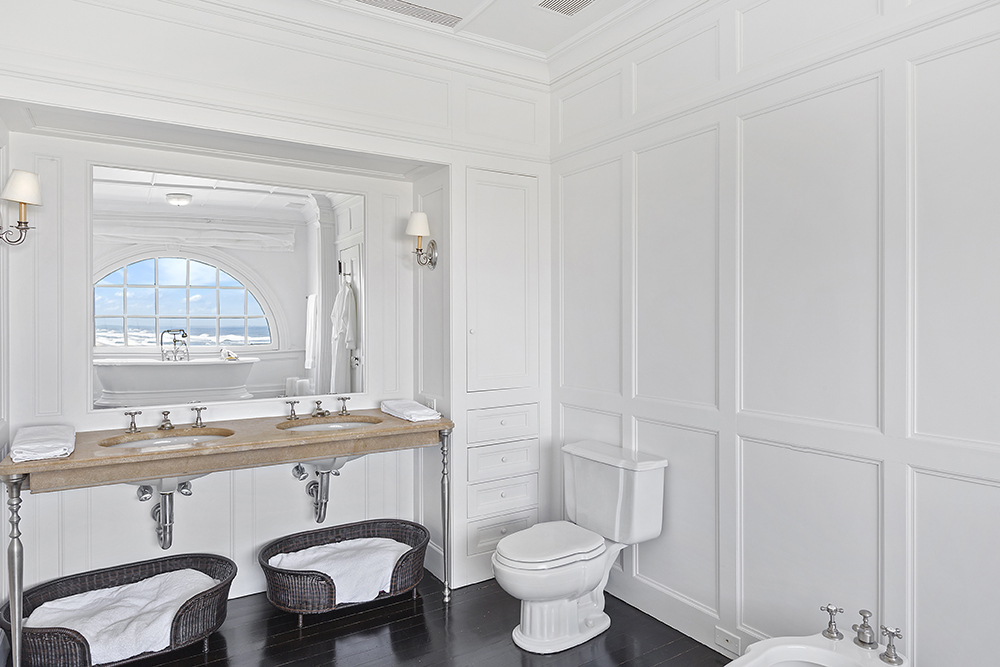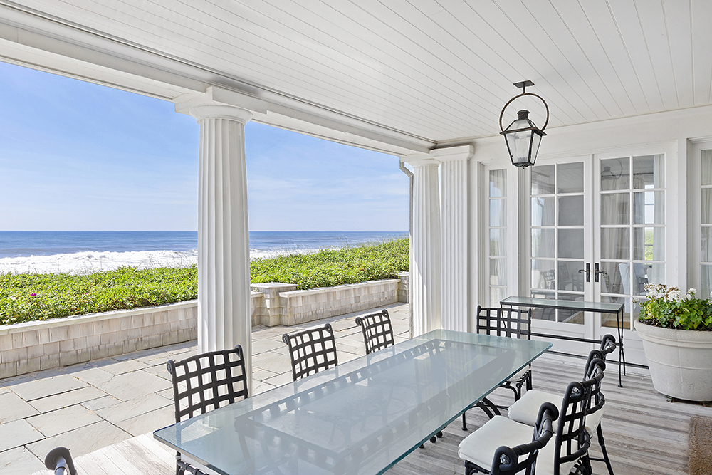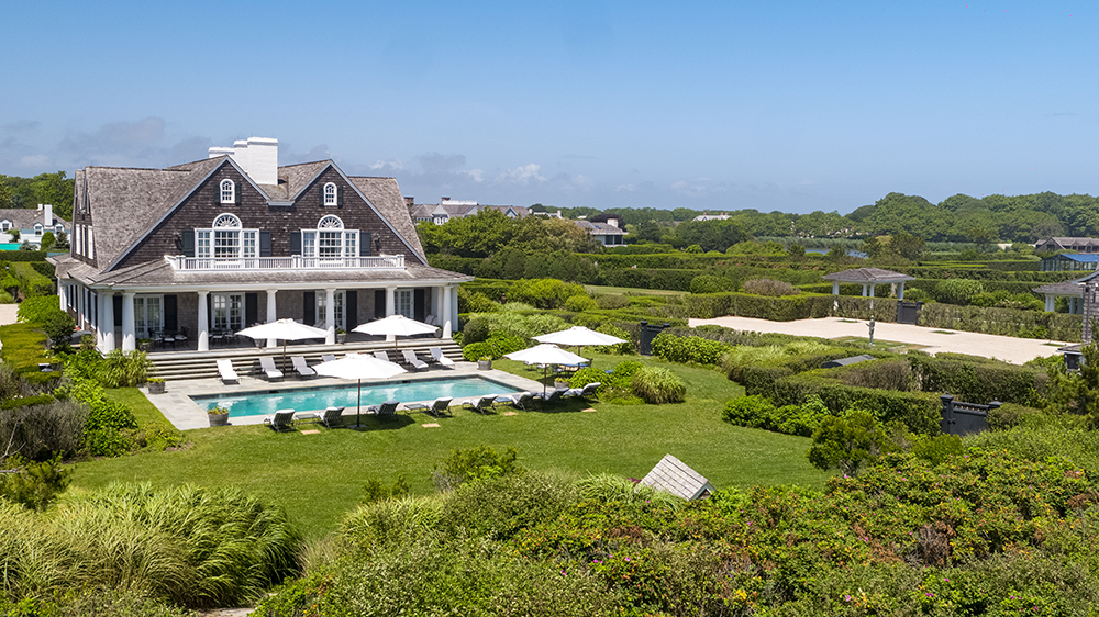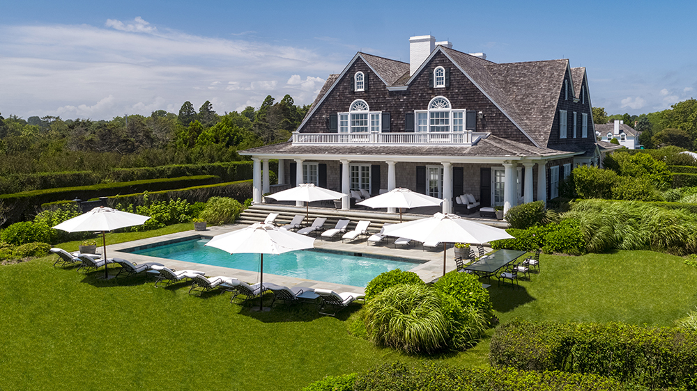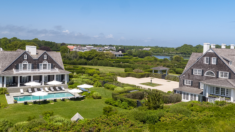 Regarded by many as one of the finest oceanfront estates in all of the Hamptons, the iconic “La Dune,” with links to architect Stanford White offers two extraordinary residences on almost four acres, with over 400 ft. of bulkhead beach front, gorgeous hedged lawns, two custom Gunite pools, and sunken all-weather tennis court exquisitely positioned along word renowned Gin Lane. Security gates and hedging open to a wide gravel drive, with the main four-story residence rising majestically from its front parking court. Constructed in the early 1900s, the classic shingle-sided presides over rosa rugosa dunes that slope down to the wide sandy beach. The gathering rooms across the second level open across a series of decks and patios that all take in ocean breezes, and from which one can watch the ceaseless waves. The second, wholly separate guest residence, was built nearly 20 years ago using the finest of quality architectural details and construction in order to reflect the design and proportions of the main house. A ground floor, brick-floor entry hall with full bath opens the main residence, and a grand staircase rises to the main level with great, living, sun, formal dining, and morning rooms, family kitchen with fireplace, and a sitting room with powder room. An elevator services all levels. The third level features the master wing with sitting room, two over-sized baths, and large dressing room/closet. The top level includes four bedrooms and three baths. Located back at ground level, are a full service kitchen, office, gym area, laundry facility, and staff suite. The guest residence opens with a long entry hall, off of which are a parlor, great room, and dining room that all open onto a covered deck. Opposite is a library with bath, kitchen, and a guest/staff wing with powder room and two bedroom suites. The second story features four generous guest suites, and the finished lower level includes a billiards and bar room, a gym with steam, sauna and massage room, theater, additional staff suites and laundry. The extensive grounds include two covered pavilions at either end, two swimming pools, and a tennis court. The ocean views and setting are sublime embracing the best of seaside living experienced only in the finest locales around the world.