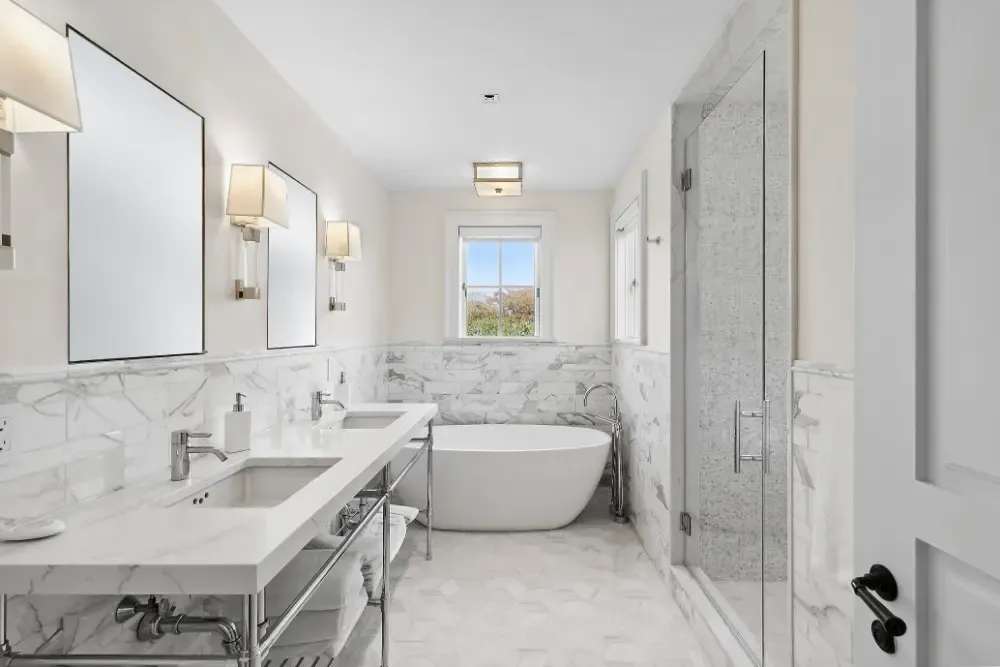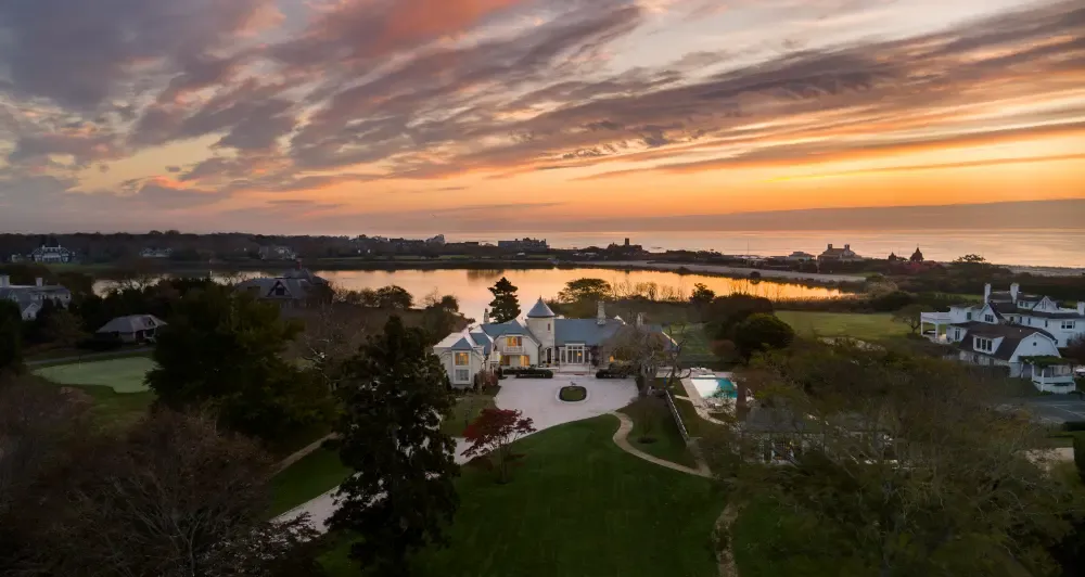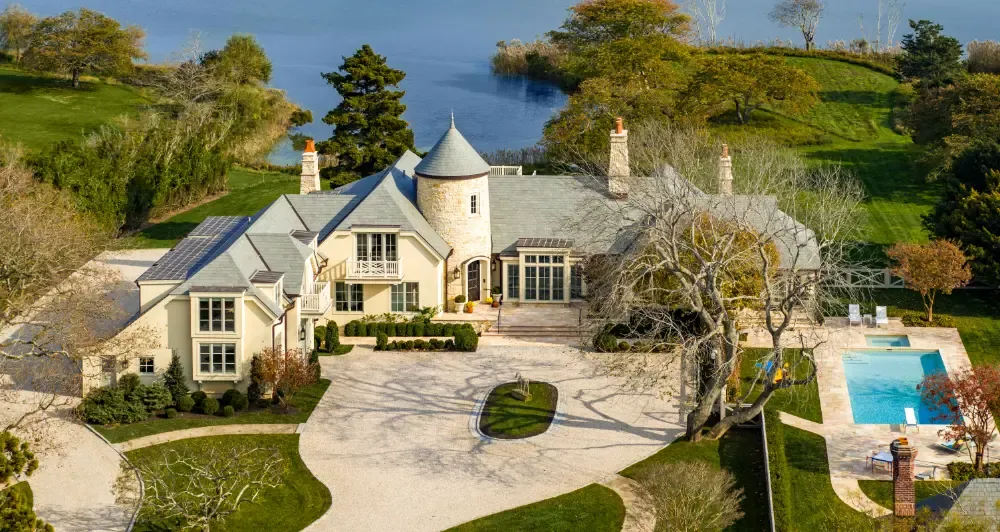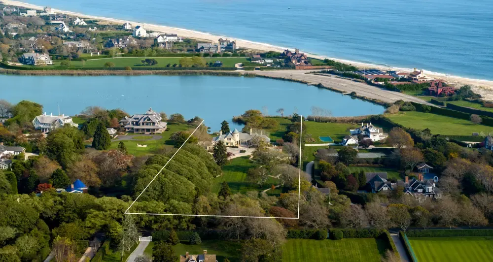First offering of this magnificent street to Lake property at the southerly end of Lake Agawam on First Neck Lane where the Lake meets the Atlantic Ocean. Two parcels comprising over 4.5+ acres feature an elegant estate house in perfect condition sited on 2.7 acres with nearly 500 feet of water frontage. Enter the stone pillard unassuming country drive beneath the canopy of an allée of Linden trees brings one to the front parking court. Step back and take in the beautiful architecture and quality of this exceptional stone, slate and stucco home with the finest quality of details. Wonderful natural light brought in by large walls of glass embrace the interior spaces as well as the stunning views to the lake. One can’t help but appreciate the architecture in the houses across the Lake, several of which are the most prominent mansions to grace our beautiful Southampton Village shoreline. The home features 6 en-suite bedrooms including the very gracious primary suite on the main level. The sweeping staircase takes one to the landing overlooking the living room to the second floor where ocean views from the second floor bedroom suites are amazing, as is the roof terrace with panoramic water views. Throughout the house one can hear the ocean waves and enjoy the access to nearby white sand beaches; truly breathtaking. Other features include state of the art kitchen with open plan to family room, an elevator, several fireplaces, 3-car garage, 45 ft pool with adjacent spa, and a pool house with fireplace and 2 bathrooms. The land is vastly open with an enormous grass front lawn while mature perimeter trees and hedges to the north and south afford privacy. The contiguous second parcel of 1.8 acres enables the property owner to develop a substantial secondary residence, swimming pool and tennis court. Alternatively, simply hold the land as part of one’s diversified investment portfolio as historically, these assets have increased in value over the years given this most coveted location in the Hamptons. A once in a lifetime opportunity and ready for immediate occupancy. By appointment and offered exclusively.