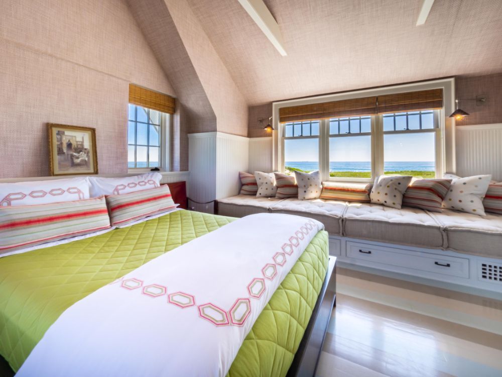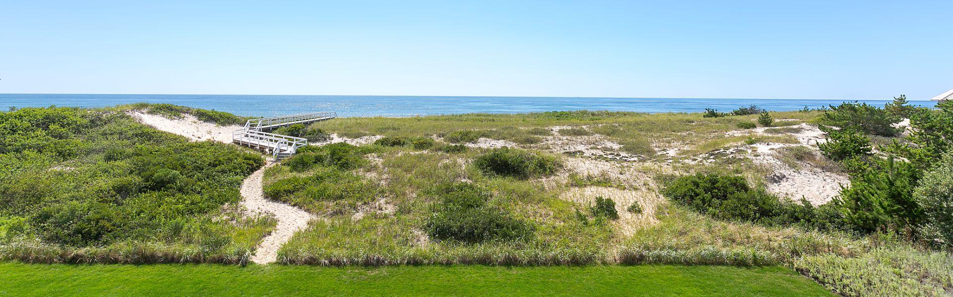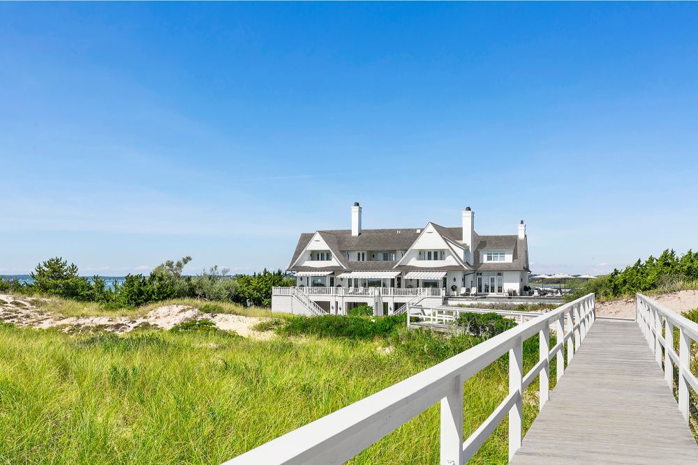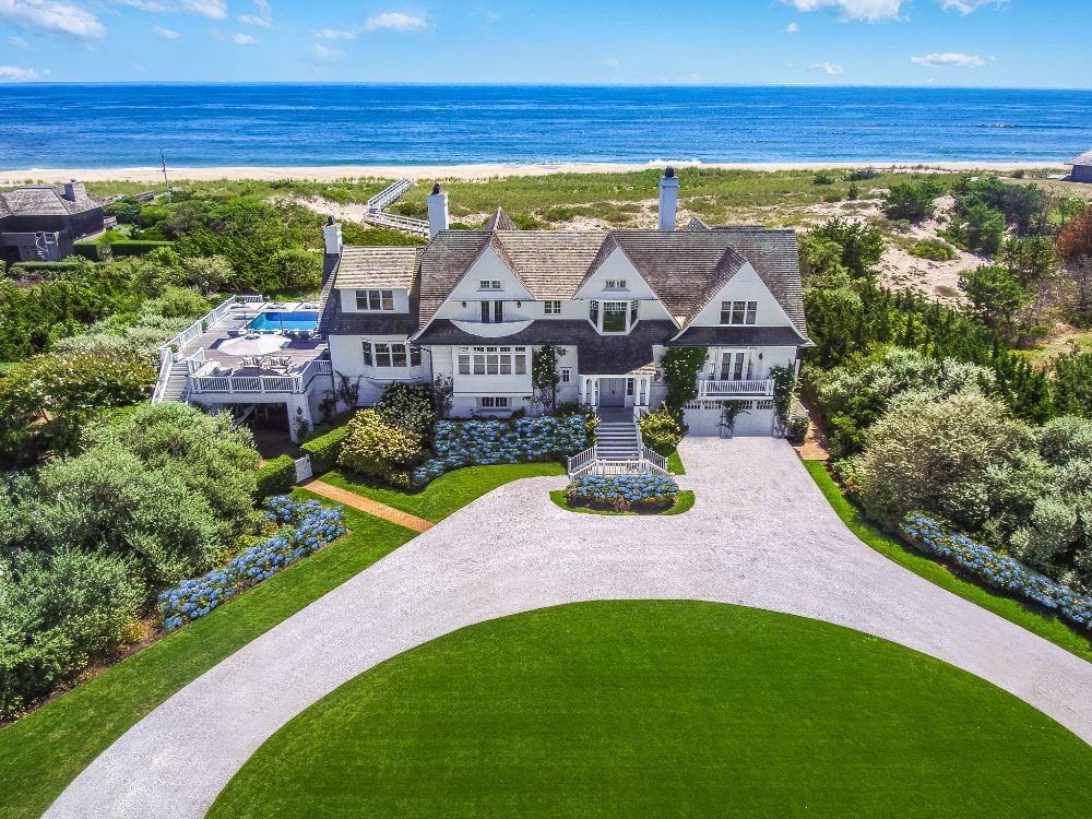 Reigning over 3.35 +/- acres, framed by both the Atlantic Ocean and Shinnecock Bay on Southampton’s fabled Meadow Lane, an impressive beachside estate with its own private dock commands imposing 360-degree views over both the Ocean and Bay. Offering over 9000 SF on three levels of fully articulated living space, the white stained shingled residence awaits at the end of a large circular drive embraced by mature landscaping, manicured gardens and a sea of verdant lawn. Outdoor decks, terraces, and patios grace all levels of this stunning traditional with intricate molding details, multilayered interiors and significant pieces all curated by renowned designer Steven Gambrel. The deeply stained polished wood floors welcome all into an oceanside sanctuary which spread out to include a great room, formal dining room, and family room, all warmed by their own fireplaces and all offering stunning views of a vast liquid backdrop. Entertaining is effortless compliments of the fully outfitted kitchen with stone counters and professional appliances that include Subzero, Viking and Thermador and a pair of dishwashers. A large, ocean-facing guest bedroom suite is joined by another facing the bay to complete the first floor. Upstairs the master wing dominates the west side of the residence from front to back offering an expansive sleeping chamber with fireplace and oceanside deck, walk-in closets and elegant marble bath looking out to the bay. The other side of the 2ndfloor, past the service bar, finds three generous guest suites and a laundry room with a double set of washer/dryers. An elevator connects all floors to the beachfront lower level offering media recreational room, gym, three full baths, wine cellar, another laundry room and a wet bar that services a covered patio. Additional amenities include a Crestron controlled environment, whole house generator and a two car garage. Expansive mahogany decking under automatic awnings offers multiple seating areas with ample room for alfresco dining and frames the ocean side heated Gunite pool with spa. An intimate bay view seating area is the perfect spot to enjoy spectacular sunsets and afternoon refreshments. A private wooden walkway leads past the generous lawn to 200 +/- feet of pristine ocean beach while to the north a dedicated dock reaches far out into Shinnecock bay to accommodate a variety of watercraft. Impressive by any standard, this significant beachfront offering awaits your private tour and future lifestyle enjoyment.